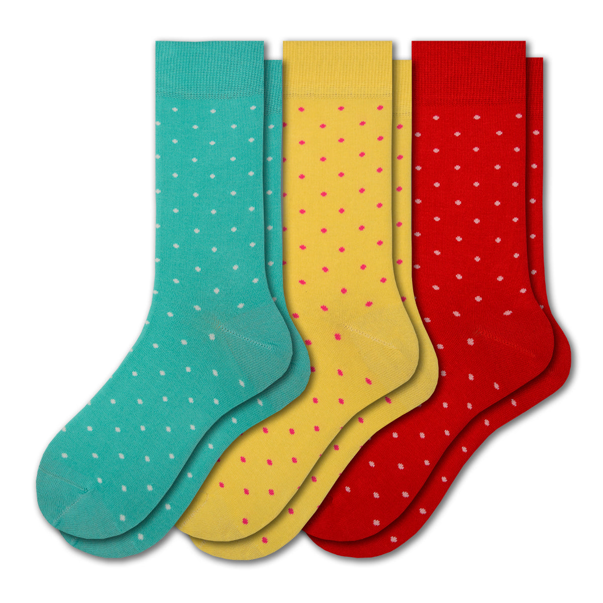 Women's Combed Cotton Socks, Colorful Pin Dot Crew Casual Women's 3 Pair Pack Socks