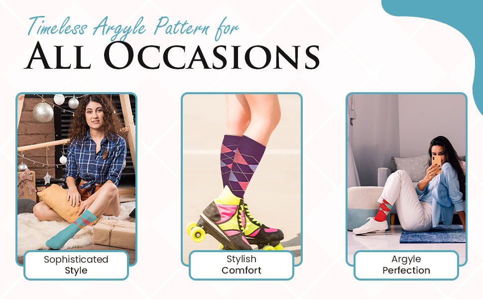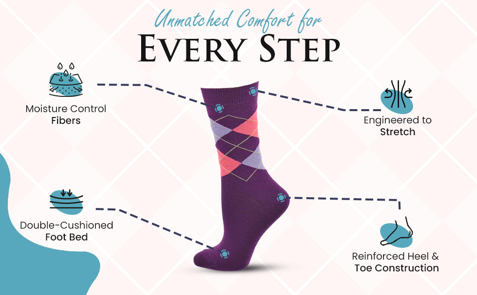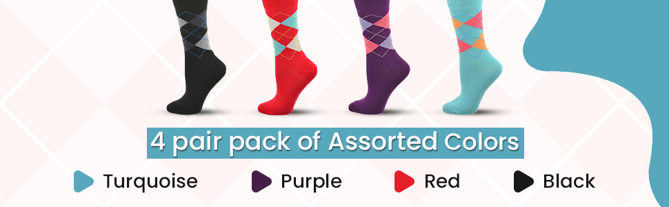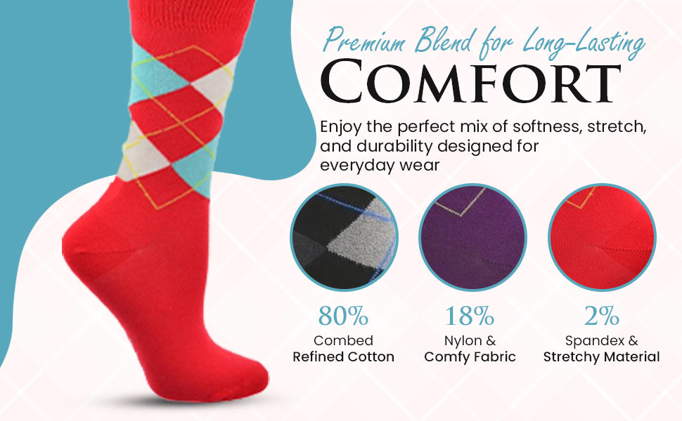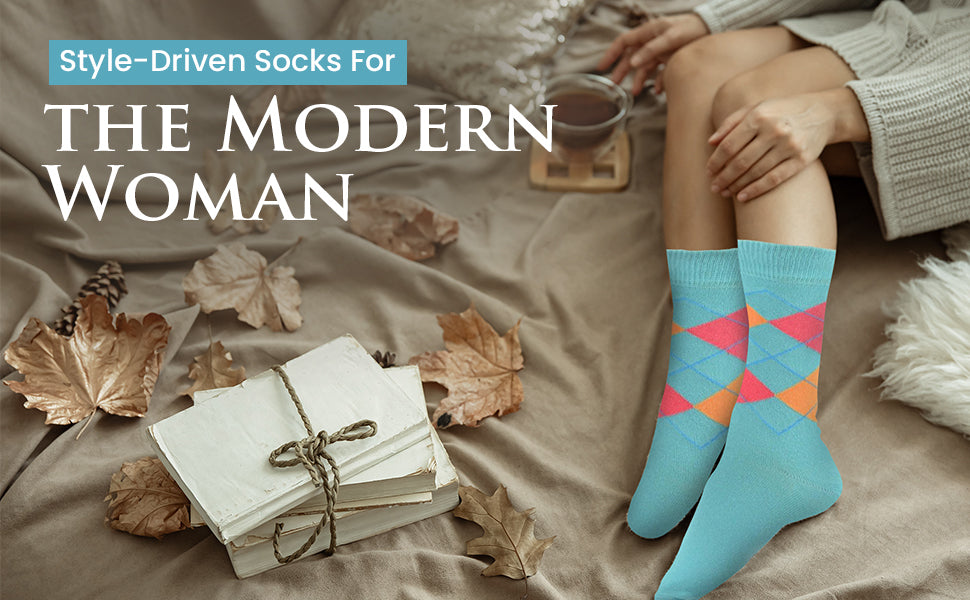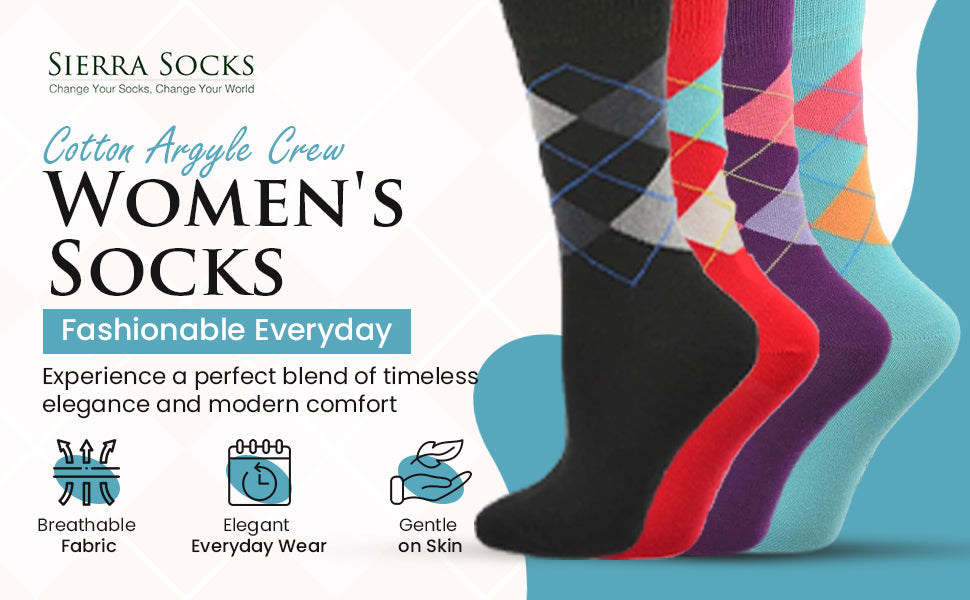 Women's Combed Cotton Socks, Colorful Argyle Women's Socks Crew, 1 Pair Pack