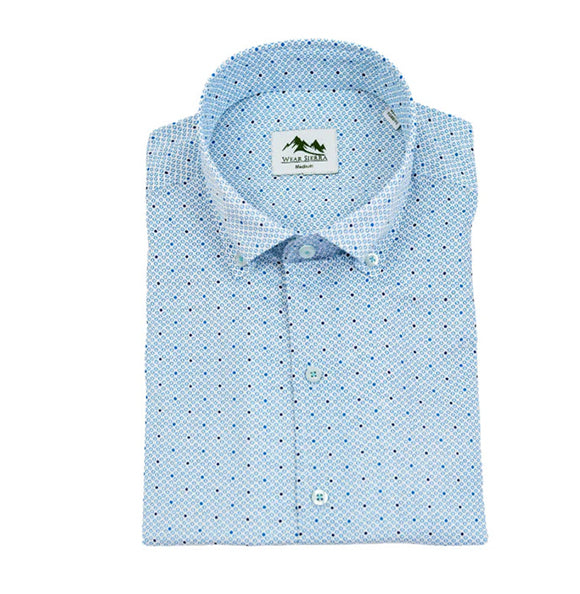 Wear Sierra Top Shelf Men's Cotton Short Sleeve Button Down Shirt Blue Dots