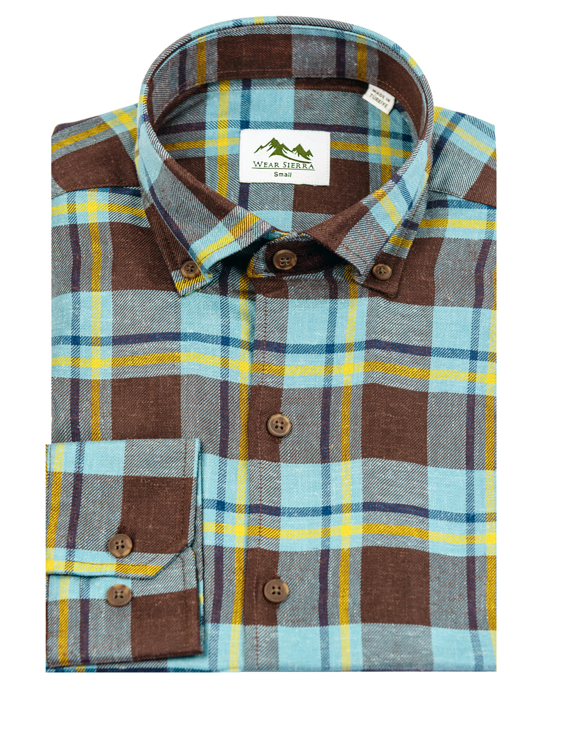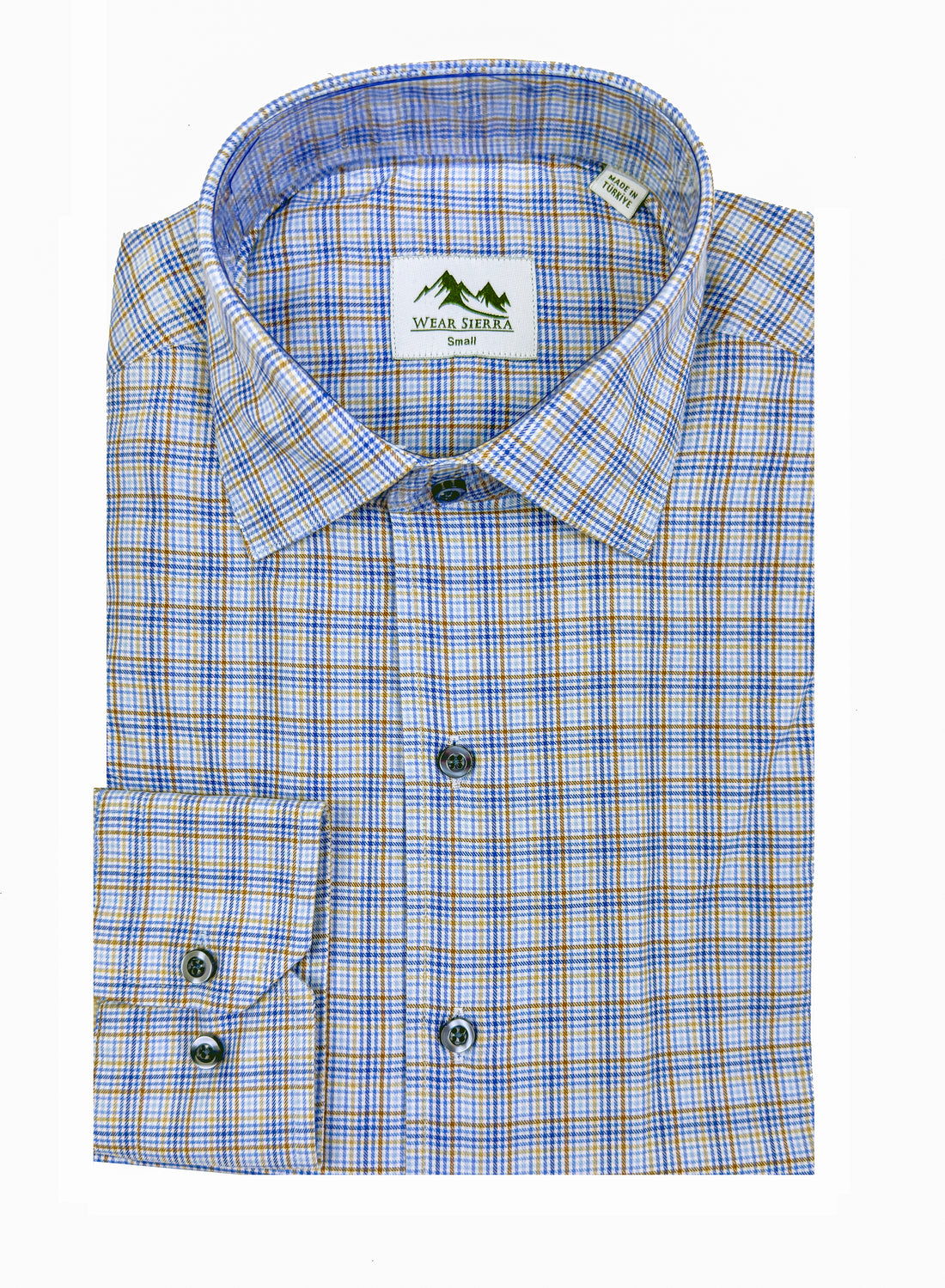 Wear Sierra Top Shelf Men's Turkish Cotton Long Sleeve Button Up Shirt in Blue & Brown Plaid, Casual Friday Shirt for Men