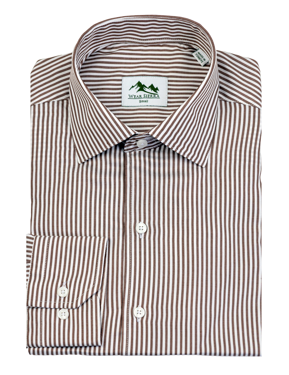 Wear Sierra Top Shelf Men's Turkish Cotton Long Sleeve Button Up Shirt in Brown Stripes, Casual Friday Shirt for Men