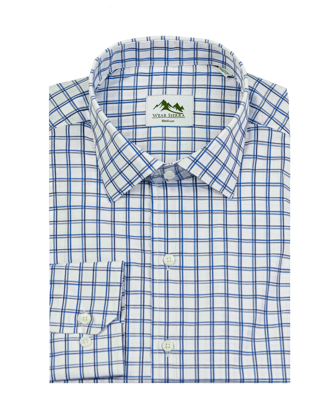 Wear Sierra Top Shelf Men's Turkish Cotton Long Sleeve Button Up Shirt in Blue Windowpane Plaid, Casual Friday Shirt for Men