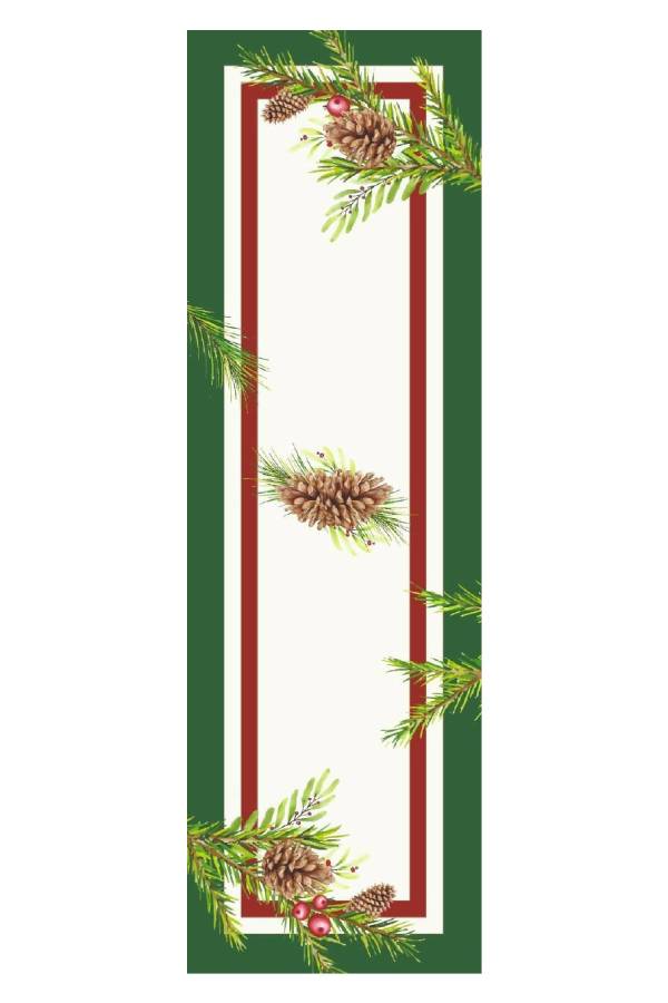 Christmas Table Runner in Classic Red & Green Pinecone Greenery Design