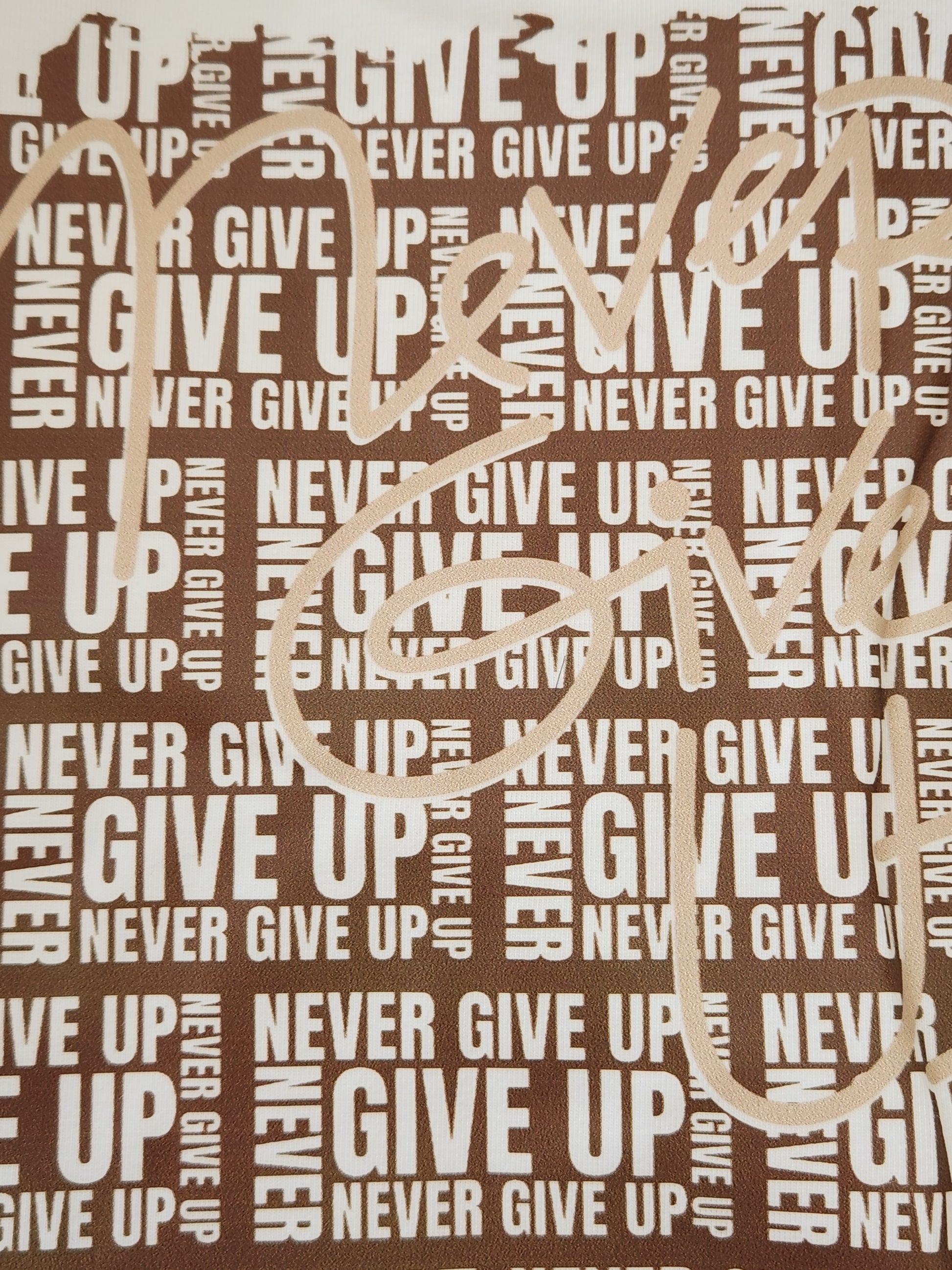 Short Sleeve T-Shirt: Printed Short Sleeve Crew Neck T-Shirt with the words "Never Give Up" to remind your little one no matter what the day holds to stay strong. In 95% Combed Cotton, 5% Spandex for the perfect fit.