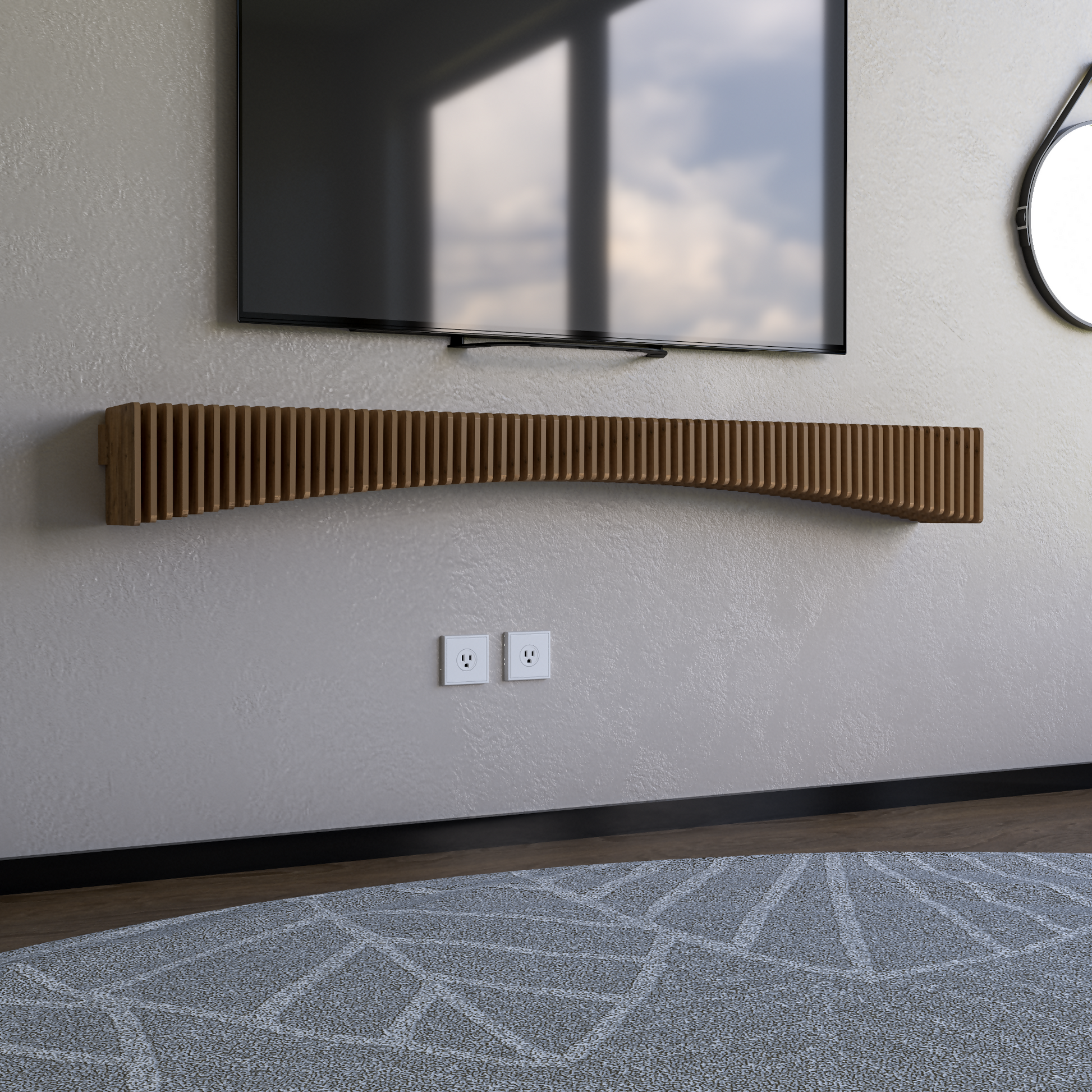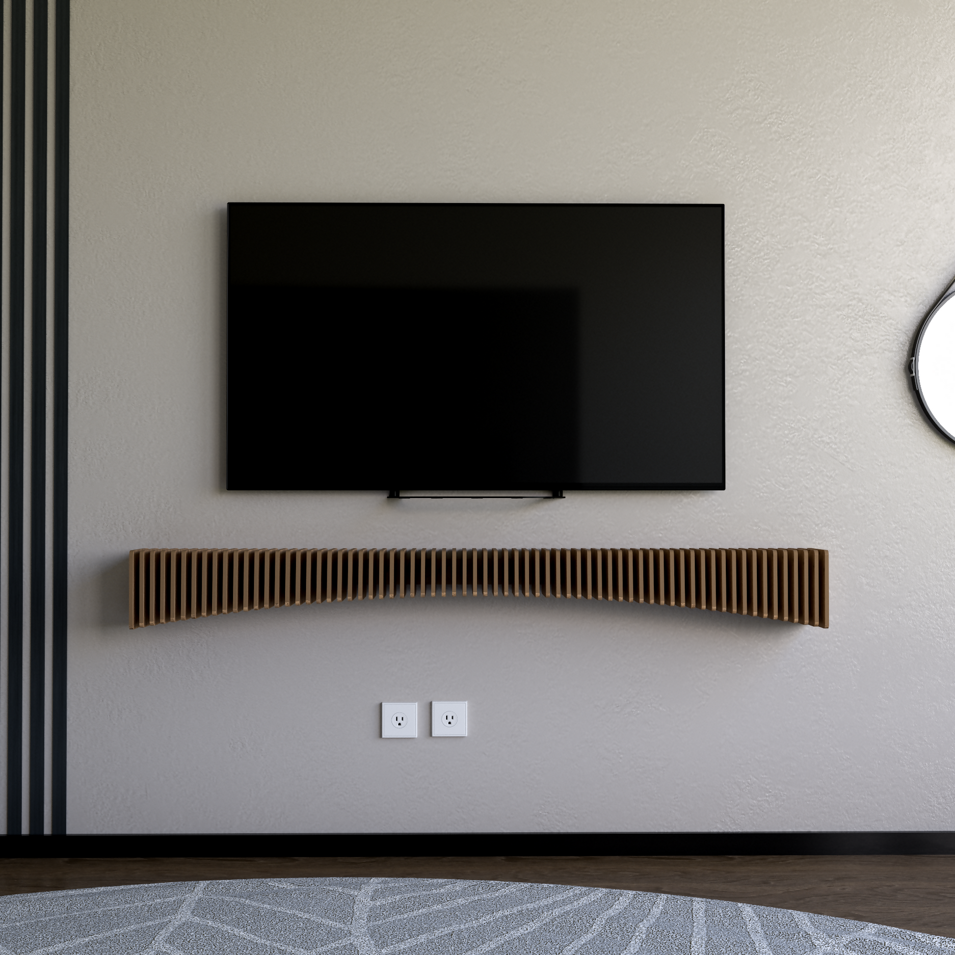 Upgrade your space with the Batamex Parametric 60" Wavy Floating Shelf TV Unit – a stunning blend of art and function that serves as both a sleek TV stand (fits 55-65" screens) and eye-catching floating shelf. Crafted from premium MDF with a warm oak finish 150cm X 17cm X 17cm (60inch X 7inch X 7inch), this versatile piece features an exclusive 3D wave design that adds modern flair to any room. Perfect for displaying media components, gaming gear, or decor, it assembles in just 15 minutes and works beautifully in living rooms, offices, or commercial spaces. More than just furniture – it's functional art that elevates your everyday storage into a design statement.