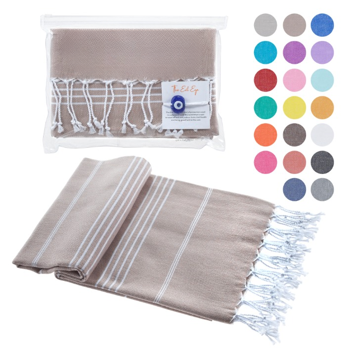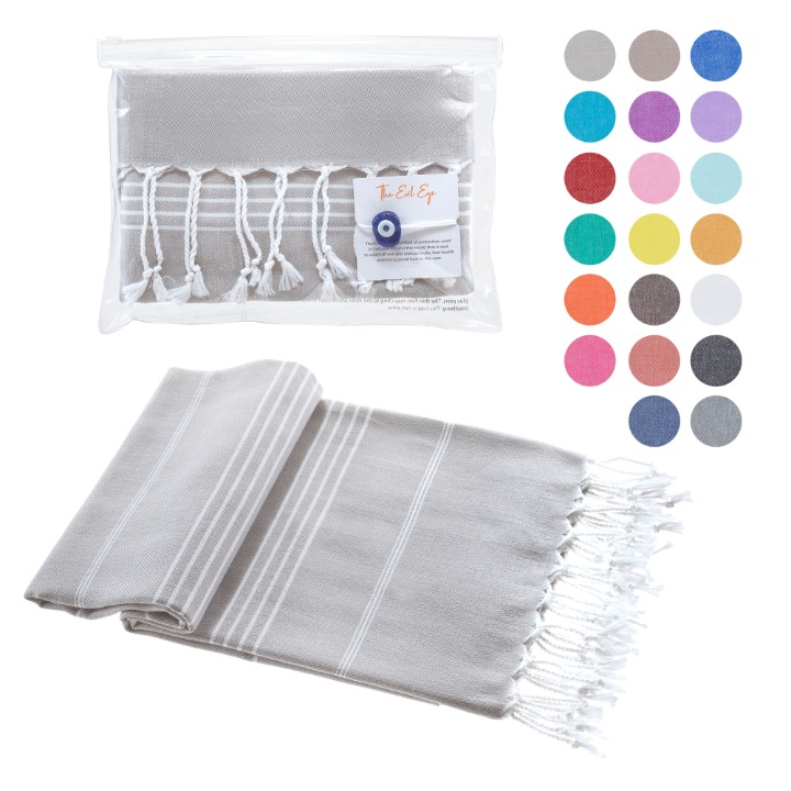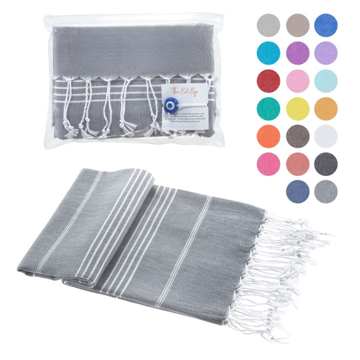 Our Turkish 100% Cotton beach towels are excellent for a day at the pool, lake or beach. They are as beautiful in style as they are functional. OEKO-TEX Certified to be free of harmful chemicals for you and your family. These beautifully designed towels are pre-washed and will resist shrinking. Designed for quick-drying, these towels are lightweight and super soft. Buy one for yourself, and treat someone you love to one as well! Makes a great gift for those who enjoy the outdoors. Pack one in your gym bag for a quick shower or lay one over your car seat for travel with the kids or dogs. Lightweight towel is great for golfers too!