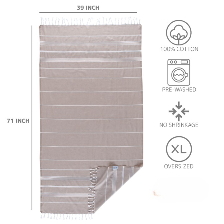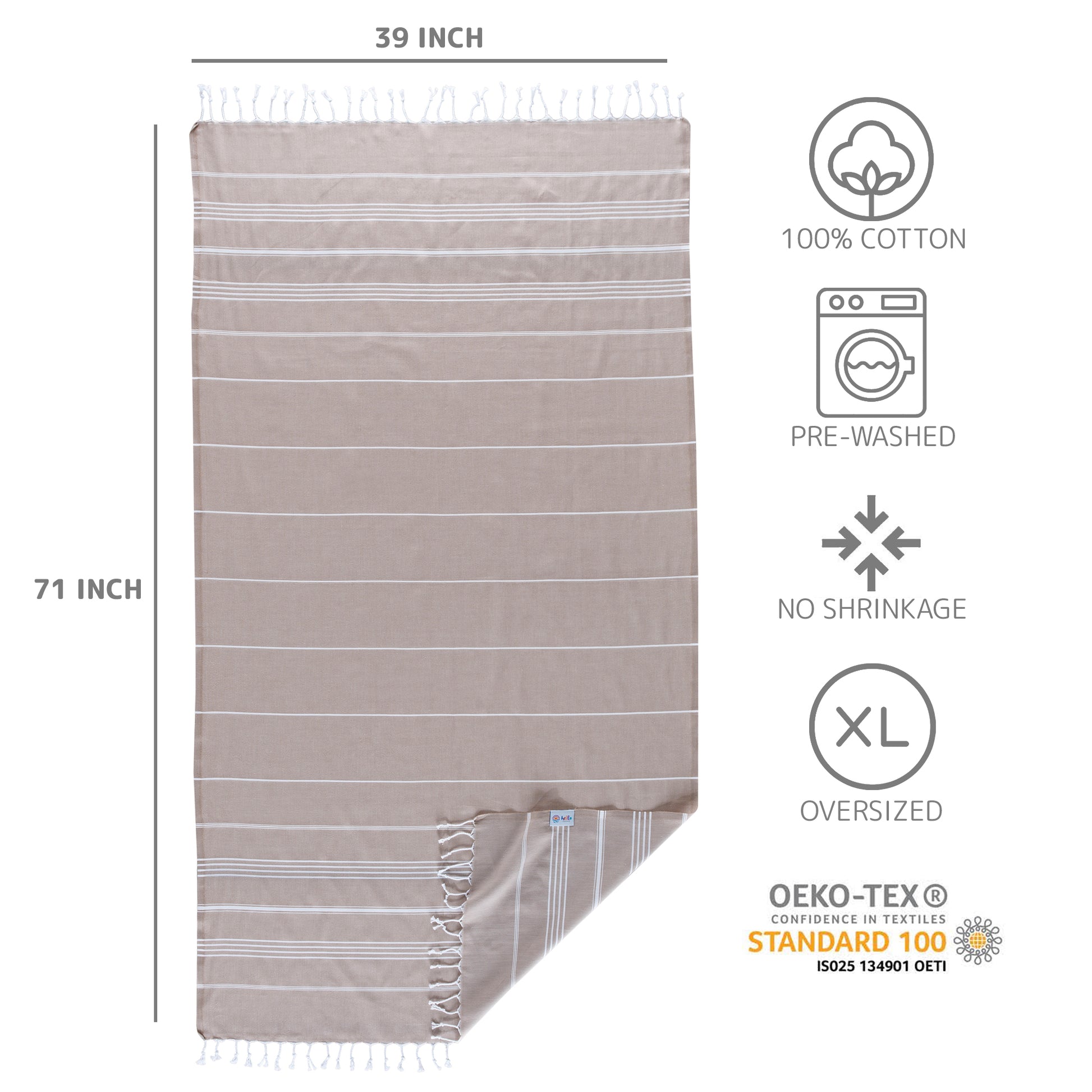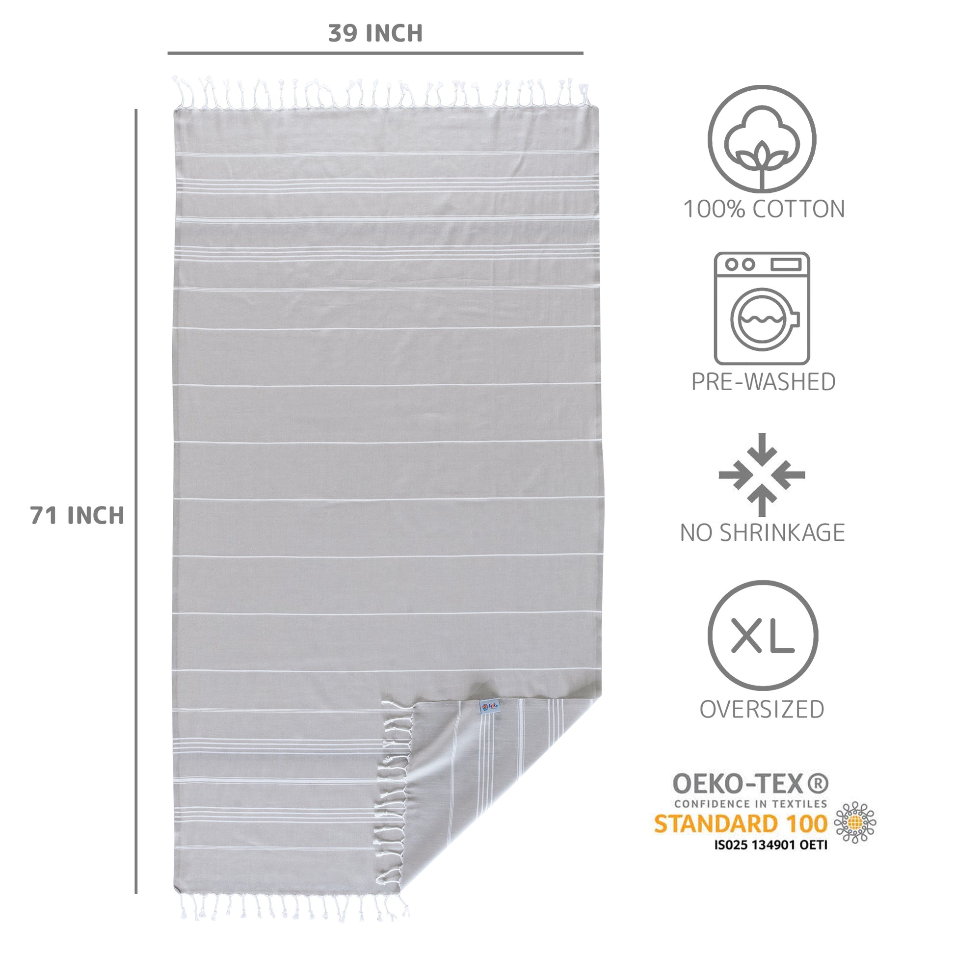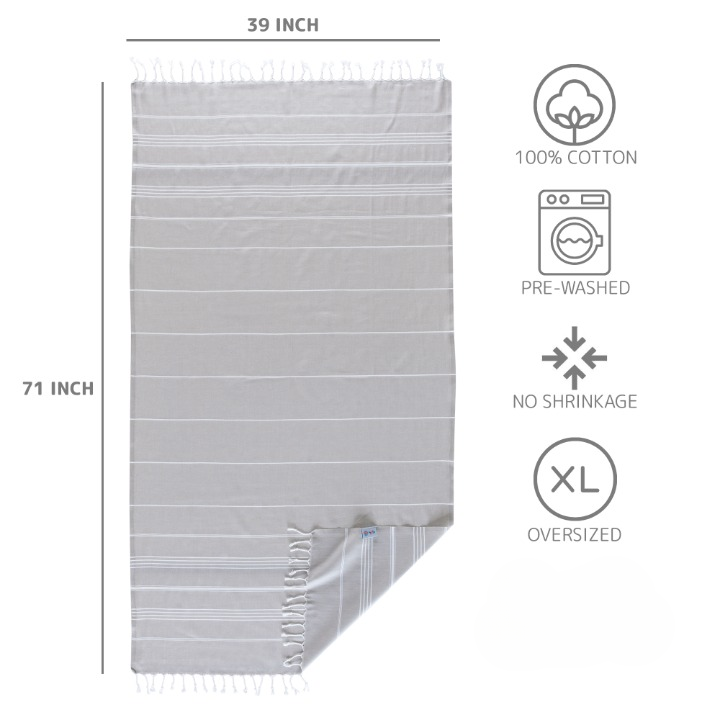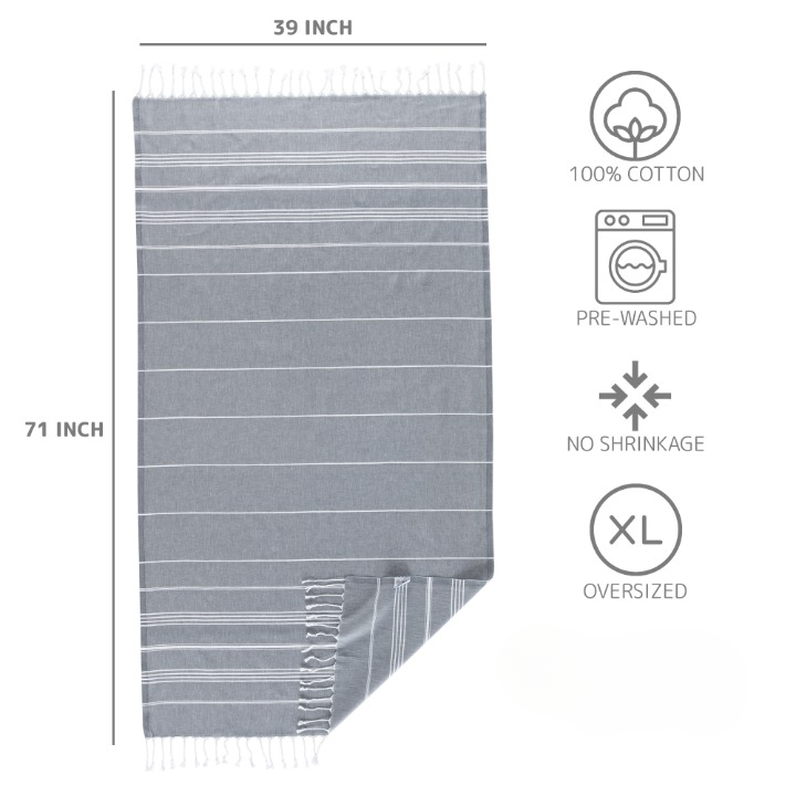 Turkish Cotton Beach Towel, Prewashed, Soft, Absorbent, Quick Dry, Oversized Bath Towels for Bathroom, Pool, Travel, Picnics, Size 39x71