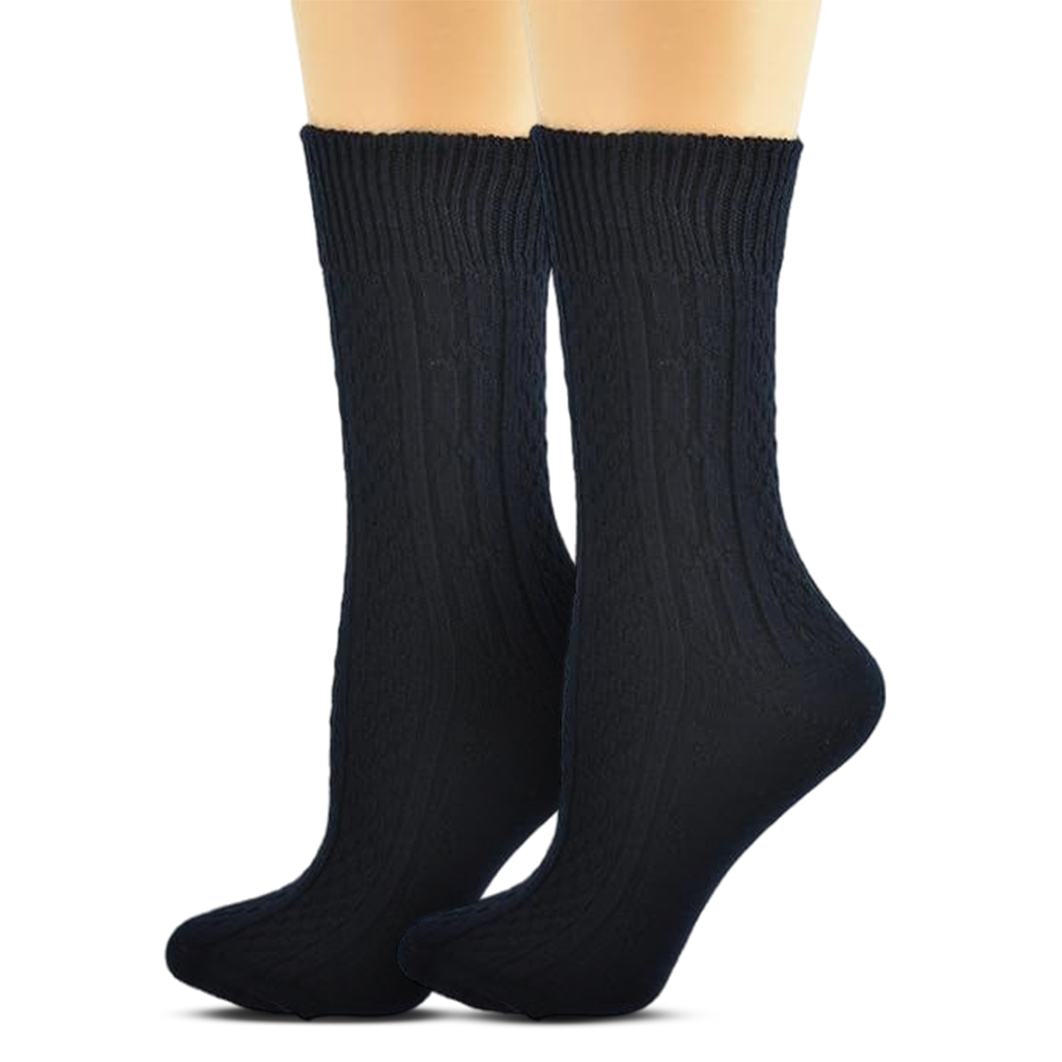 Women's Classic Cable Knit Acrylic Crew Socks 2 Pair Pack