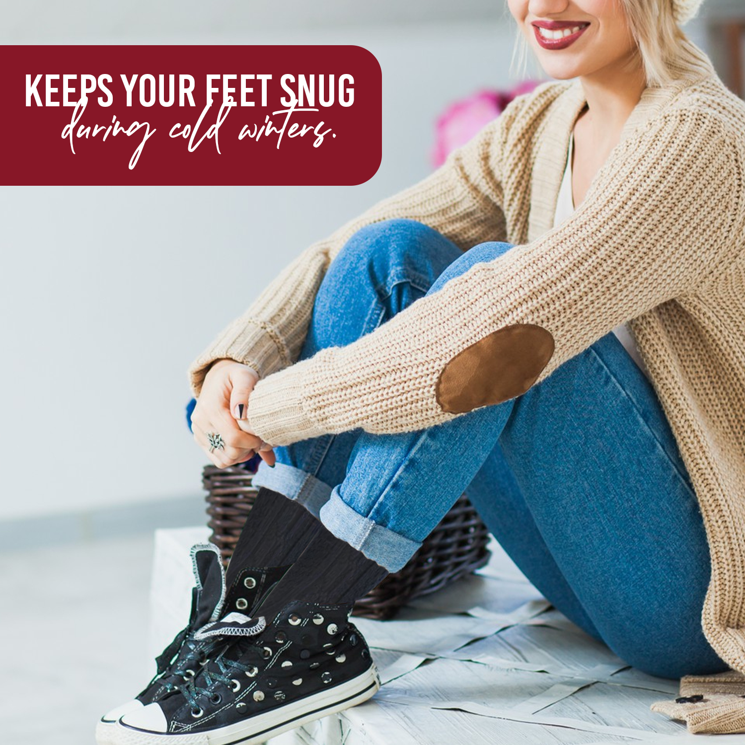 - 85% Acrylic, 12% Nylon, 2% Spandex, 1% Rubber