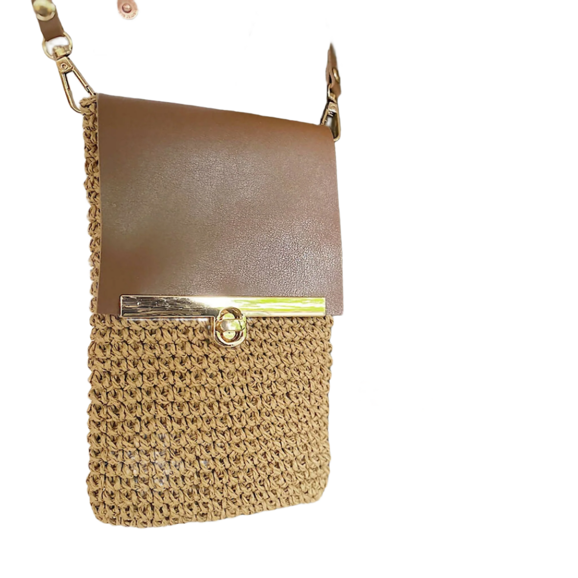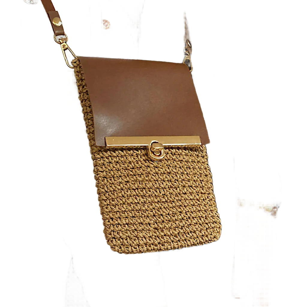 Women's Cell Phone Pouch, Cross-Body Bag with Chain Strap in Paper Yarn