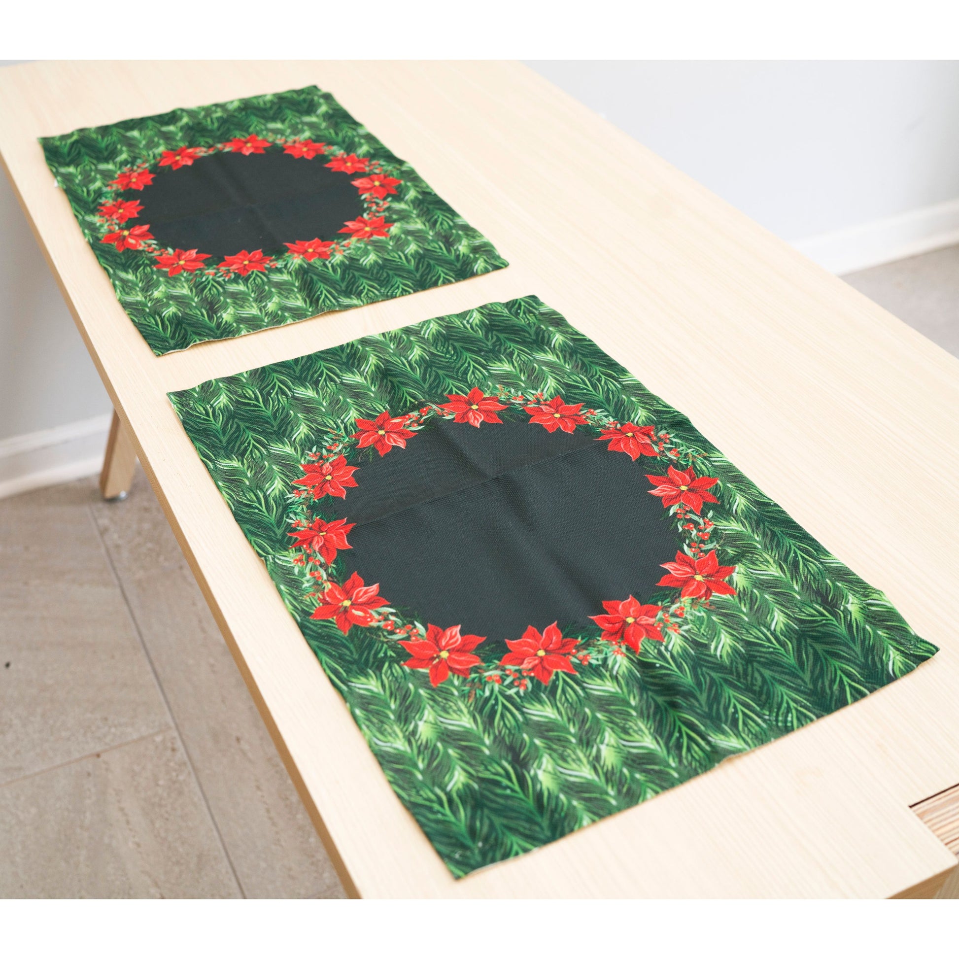 Holiday Themed Placemats, Poinsettia Flower Pattern Set of 2