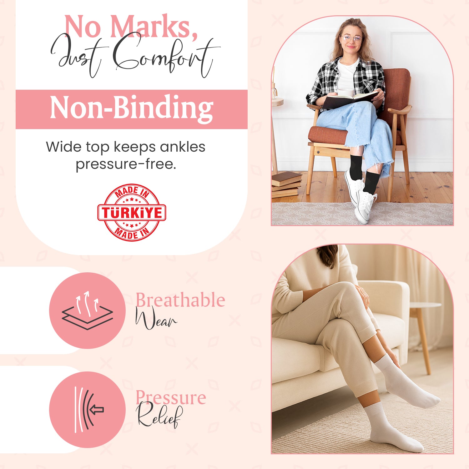 Your comfort is our #1 priority! Our classic quarter-length socks have our specialty ‘Diabetic Comfort Top,’ which features non-binding and non-slipping to allow unrestricted blood circulation - now with more fun colors to match every outfit.