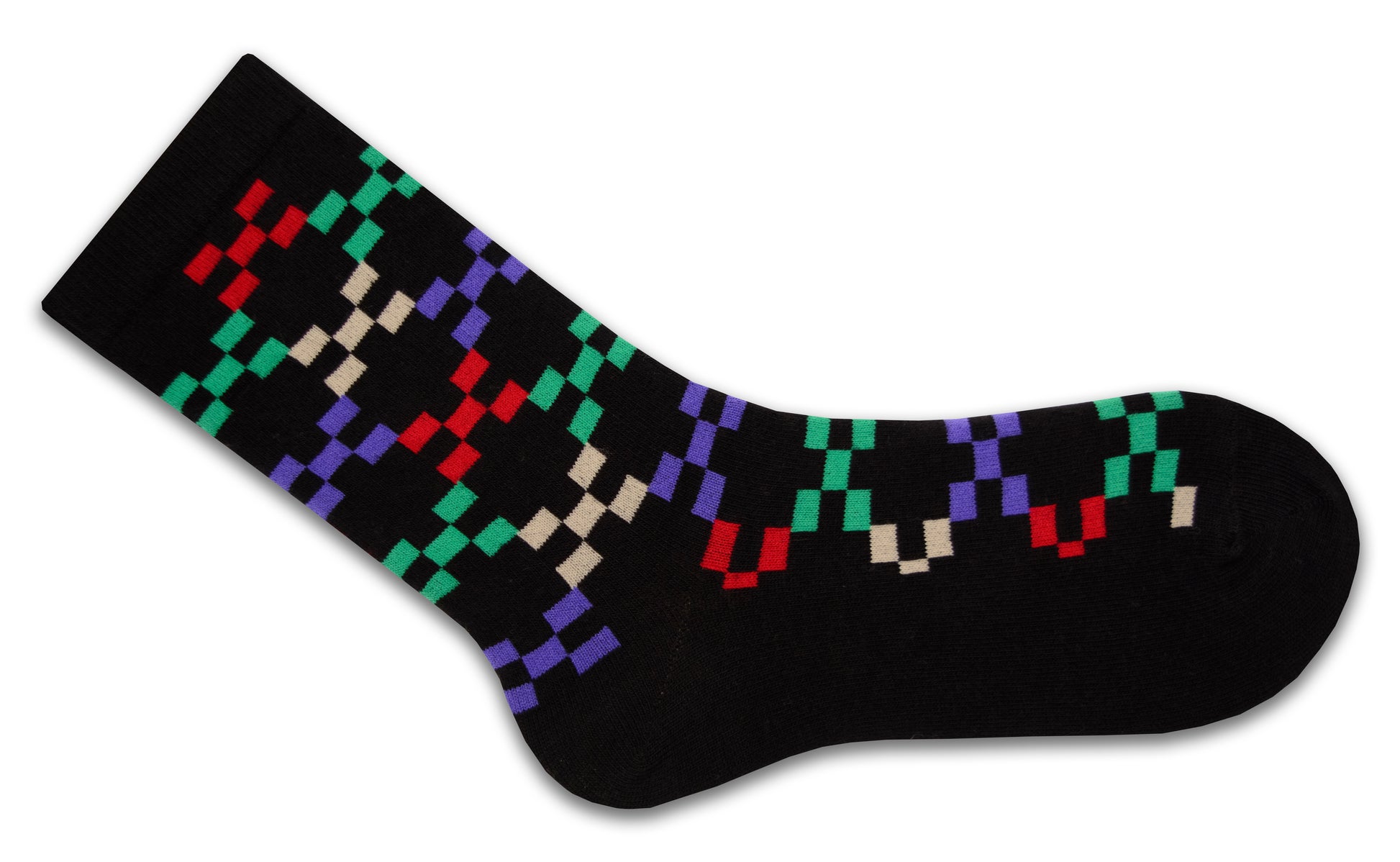 These geometric patterned combed cotton socks are perfect for adding some colorful flair to your business and work attire.