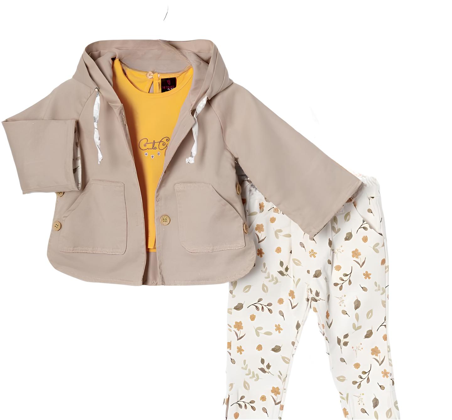 Say yes to this super adorable and oh-so-practical 3-piece outfit for your little one! This set features a fully lined hooded jacket with pockets, perfect for hiding a lollipop or a small toy. We continue this outfit with a sleeveless tank top with "Cute Girl" embroidered on the front with a tassel, and complete it with a pair of color-coordinated pants.