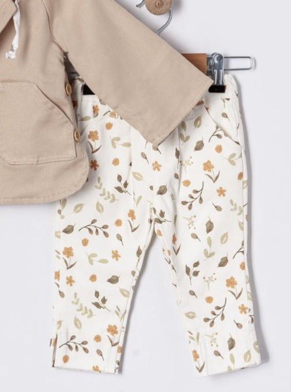 Cotton Pants: offer 4 real pocket detailing, wooden-look button closure, and elastic across the back for a perfect fit. Slit at bottom of the leg lets you style these down, or roll up to show off her favorite pair of shoes! Pants are adorned with water color flowers and fauna.