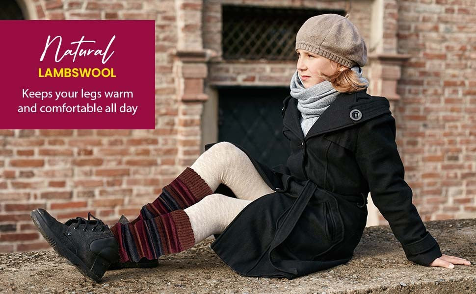 Women's and Girls' Striped Lambs Wool Leg Warmers