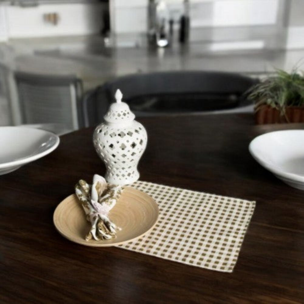 Decorate in retro style this holiday season with this green checkered design placemat set. Vintage style place mats are perfect for all-year table dressing. Set features a single-stitched hem, and is perfect for seasonal parties or to give as thank you gifts while visiting for the holidays.