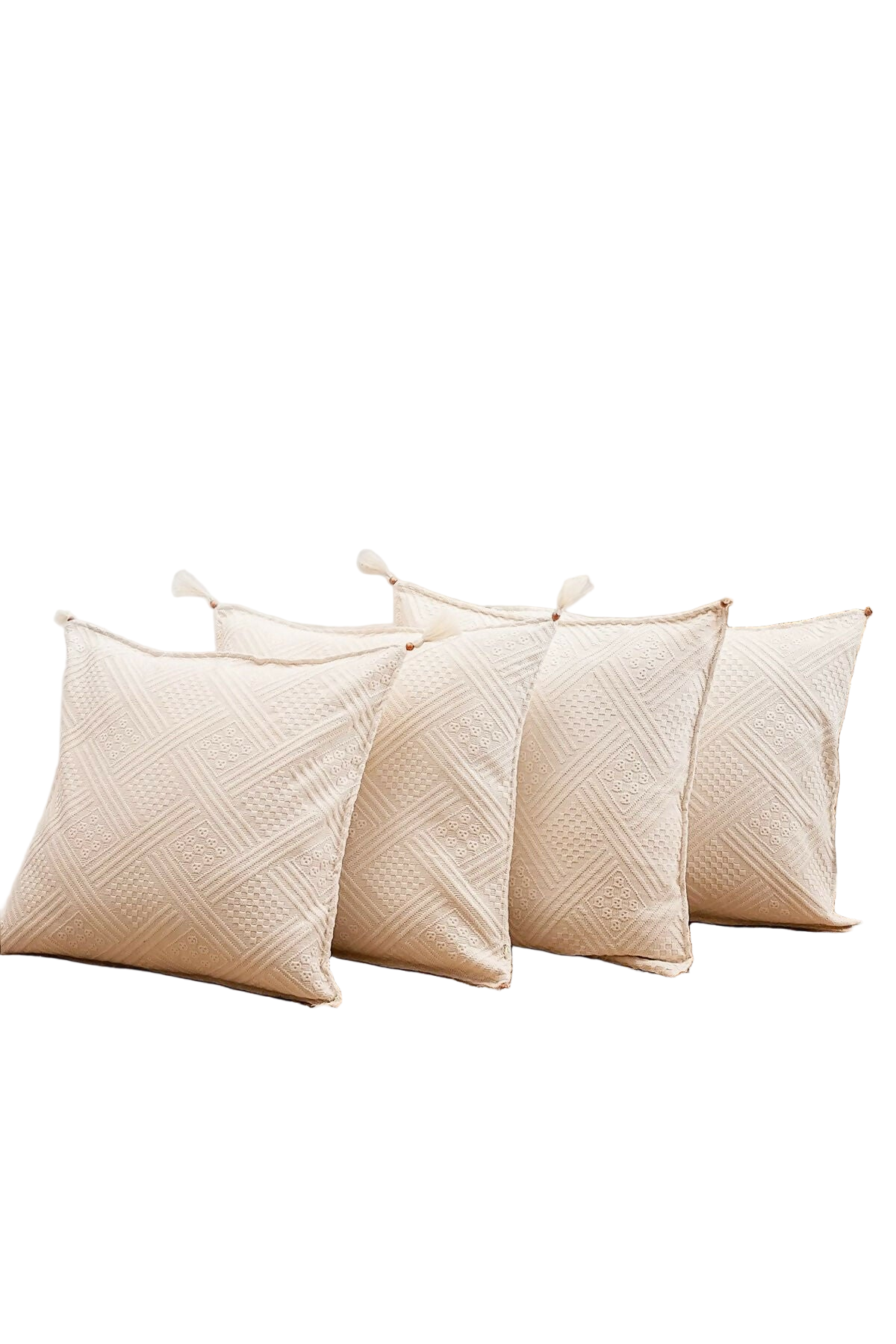 Handmade Throw Pillow Cover,Natural and Authentic Organic Buldan Cotton ,Tasseled Cushion Cover 4-Piece Set