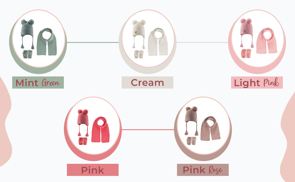 -Set includes a beanie, scarf and gloves