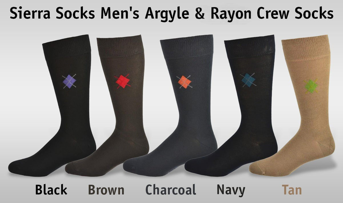 Men's Argyle Crew Socks - Great for Office Wear, Rayon Casual Wear Classy Socks