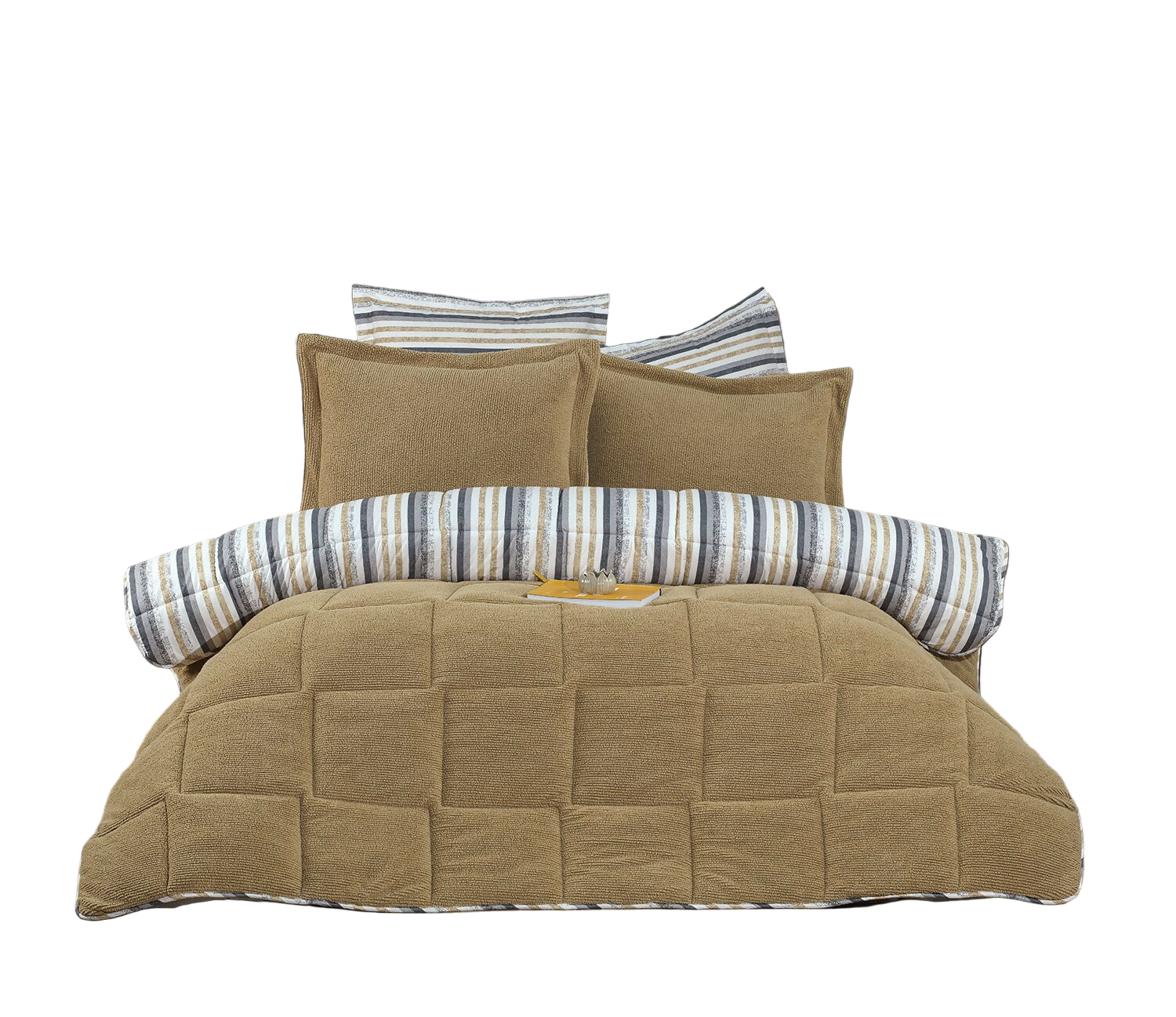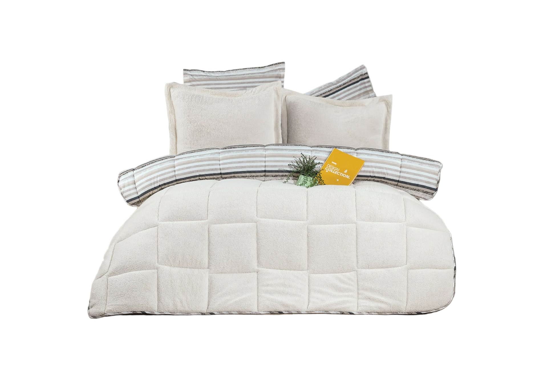 Sherpa Reversable Quilted Comforter in Turkish Cotton and Lambswool for Single and Double Beds, 4 Piece Bedding Set