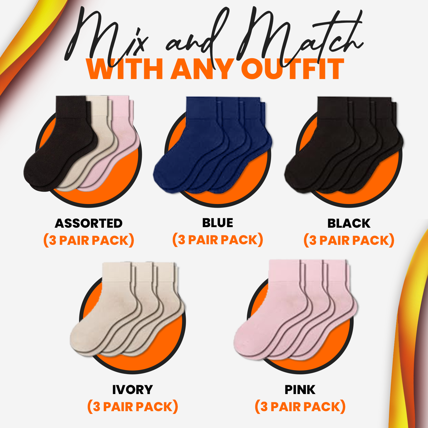 Women's Organic Cotton Turn Cuff Seamless Toe Socks - 3 Pair Packs