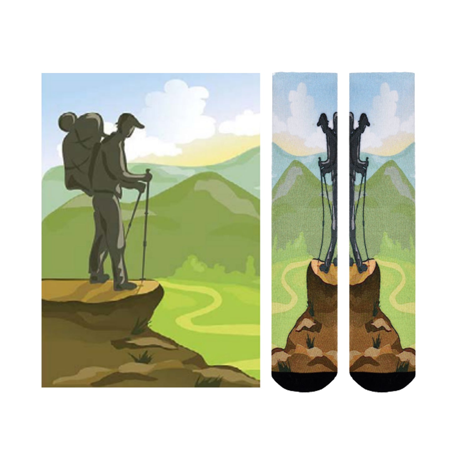 Our beautifully designed Celebrating Nature Socks with their eco-friendly sublimation dye process has you covered - whether it's a day hiking, camping or biking, or a day at the office or at home - these socks will keep your feet dry and comfortable all day. Richly pigmented socks' design will not separate when stretched over the leg. With their enhanced arch support and reinforced toe and heel areas, these socks are perfect for any activity your day holds for you. Makes great gifts for sports enthusiasts and nature lovers. Choose from over 20 different patterns in our CoolMax crew socks Nature Collection line.