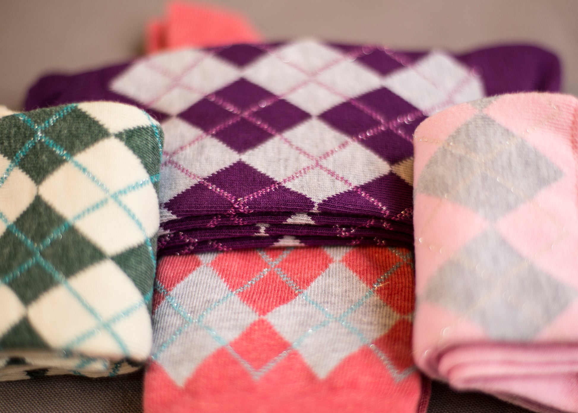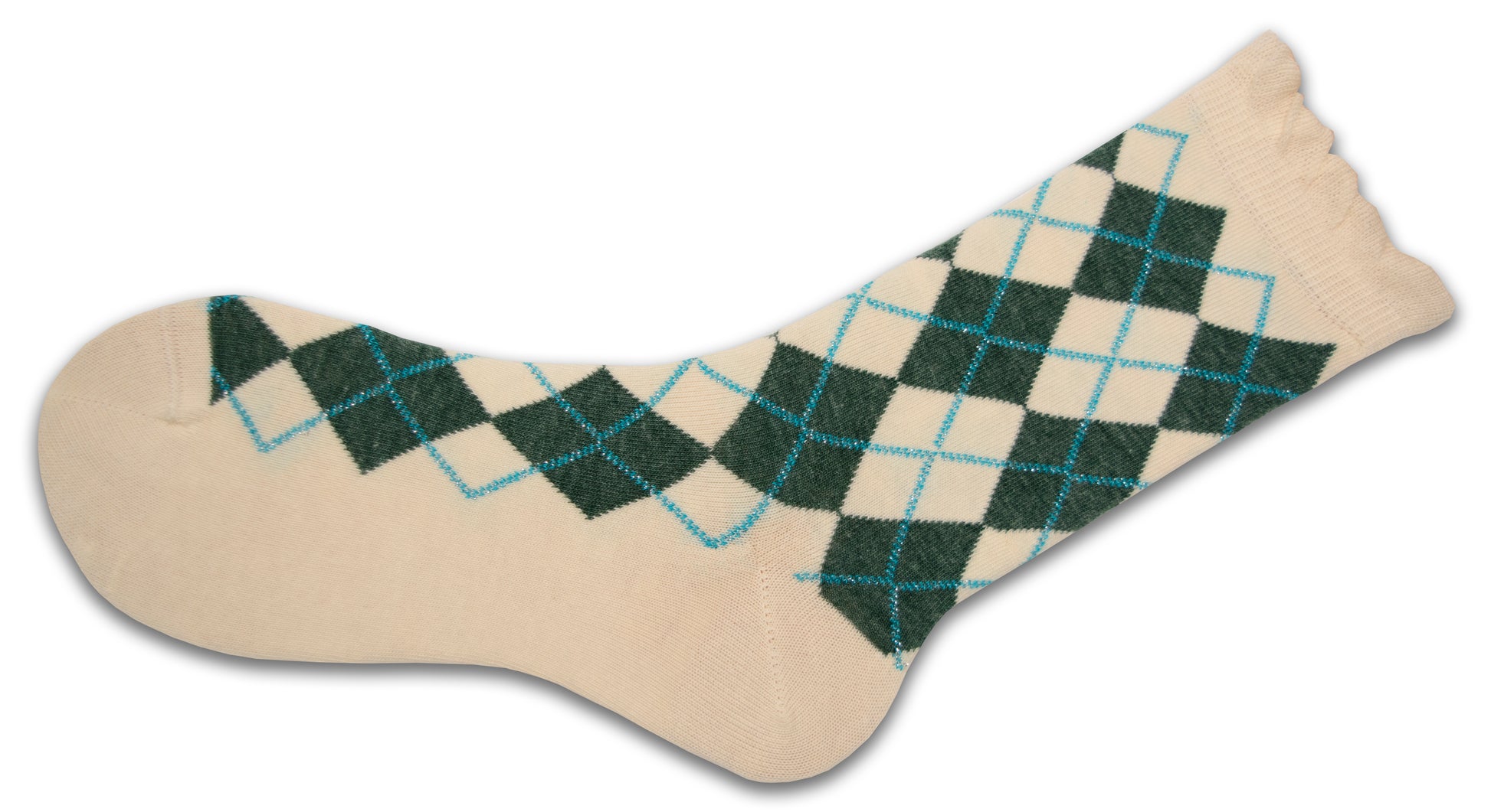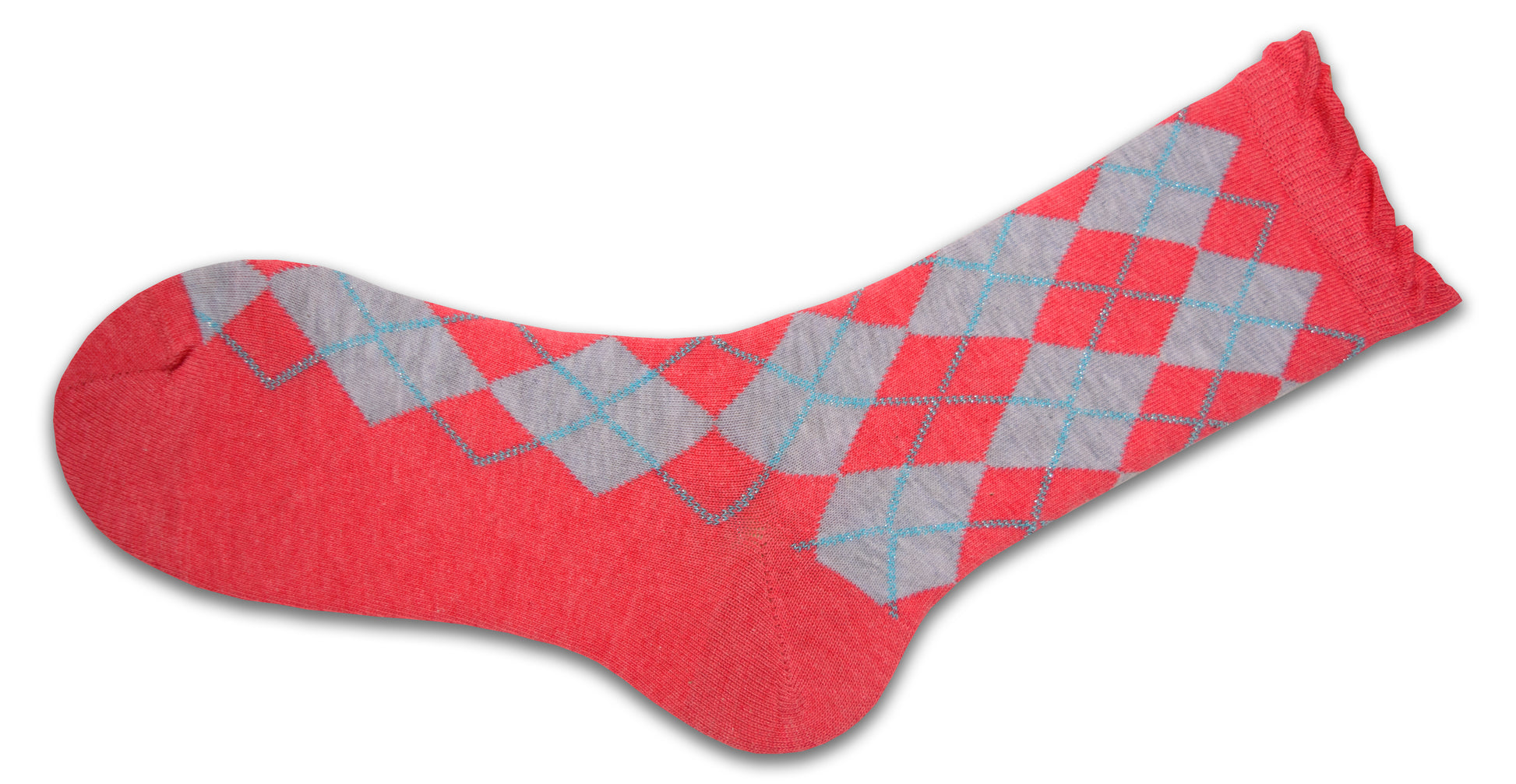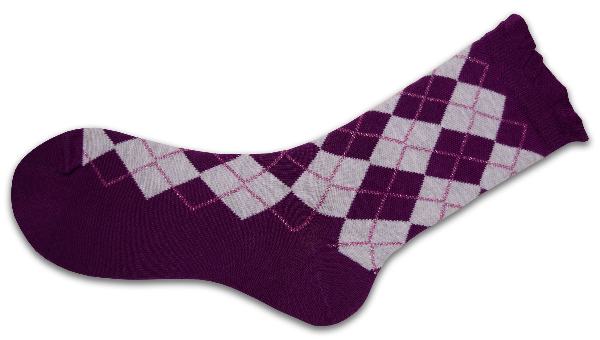 These argyle socks give more color options to the classic sock with sparkly metallic threading that provides a dazzling metallic accent without being uncomfortable or irritating.