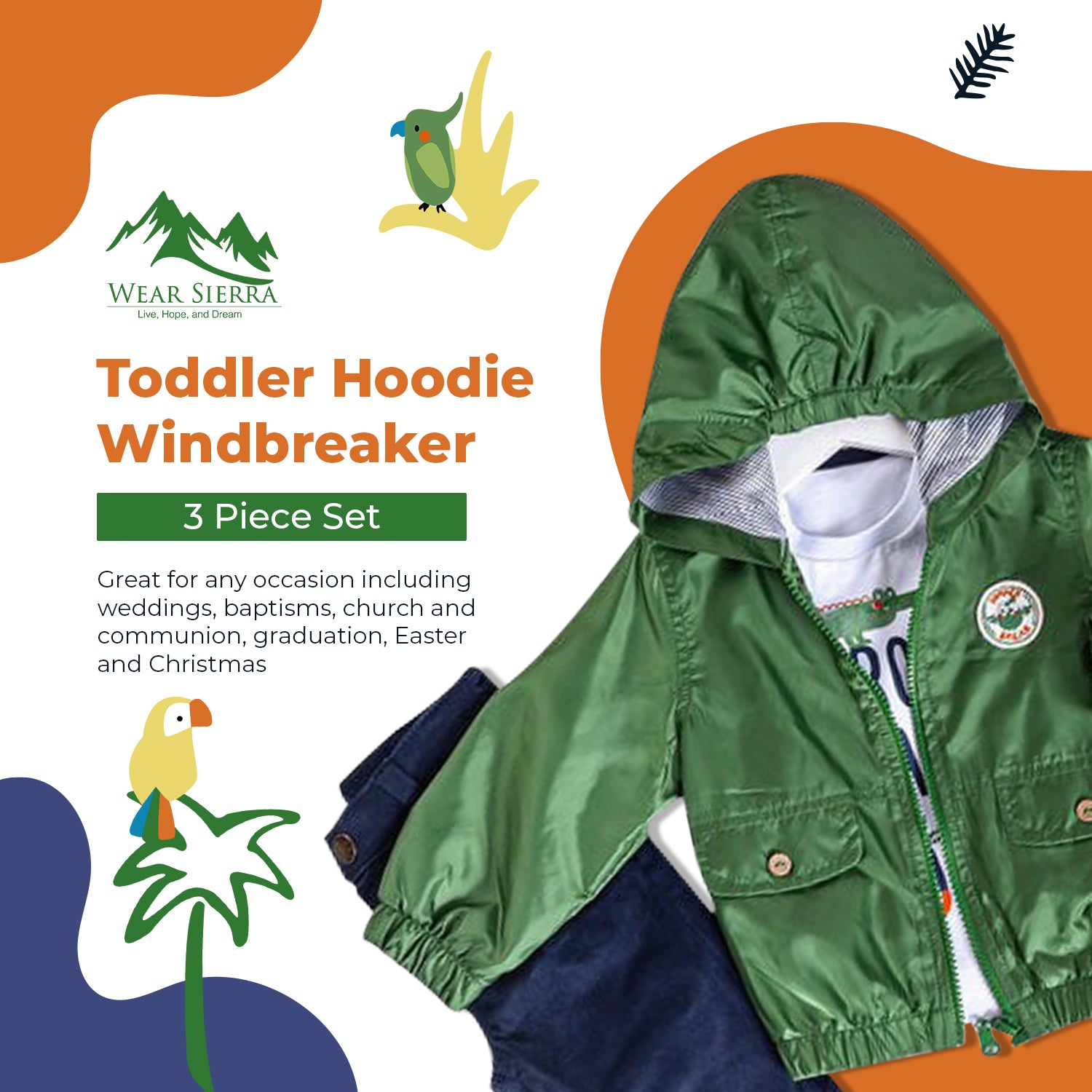 Infant and Toddler Hoodie Windbreaker 3-Piece Casual Wear - Great for Warm Weather