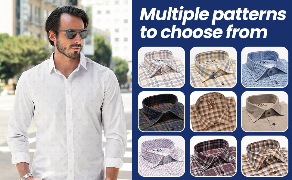 Our William&Harry Golf Men's Long Sleeve Button Up Sports Shirts are crafted from mid-weight 100% cotton yarn, resulting in a durable and naturally breathable fabric that's versatile for year-round wear. Featuring a classic button-up design that is easily paired with dress or casual pants for a stylish look, wear it untucked on the weekends or tuck it in for date night or work. Perfect for business or casual wear, these Men's sports shirts make an ideal gift for the golfer in your life. Multiple patterns and colors to choose from.