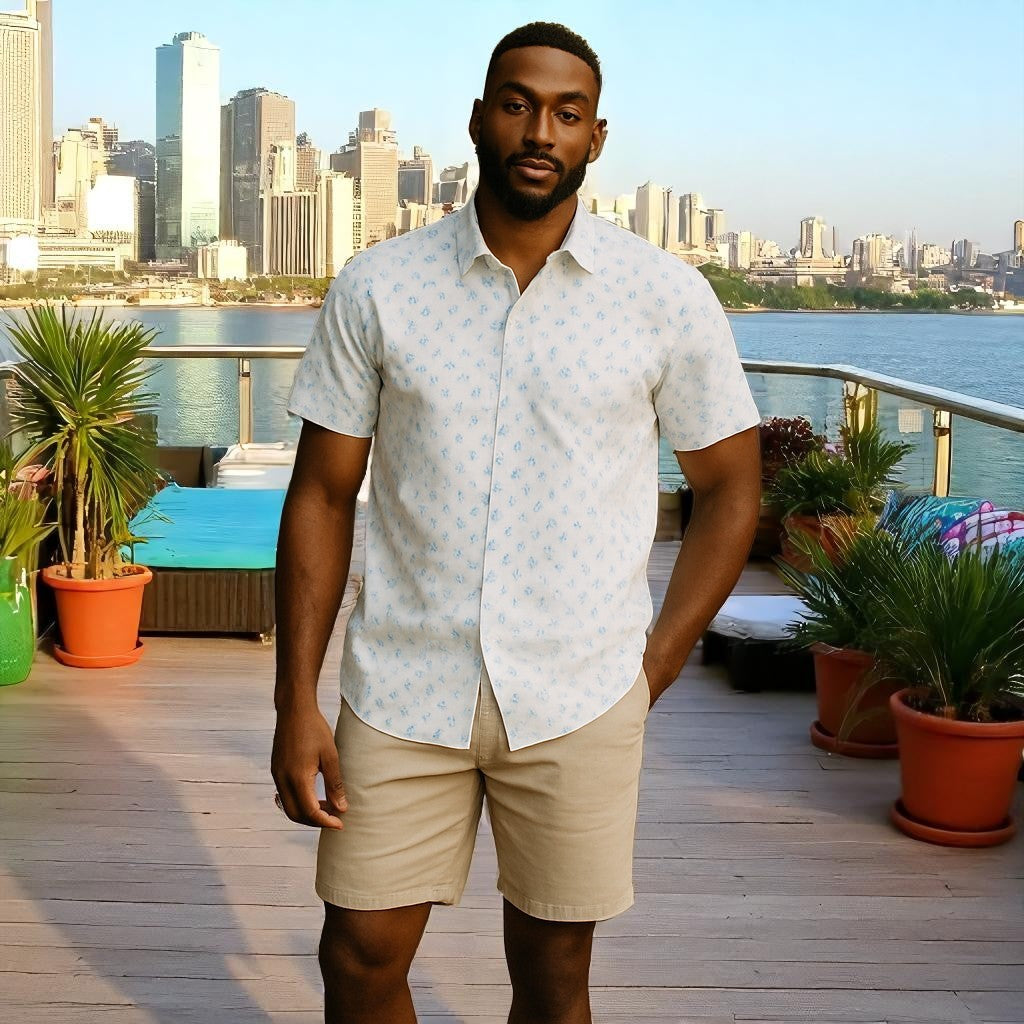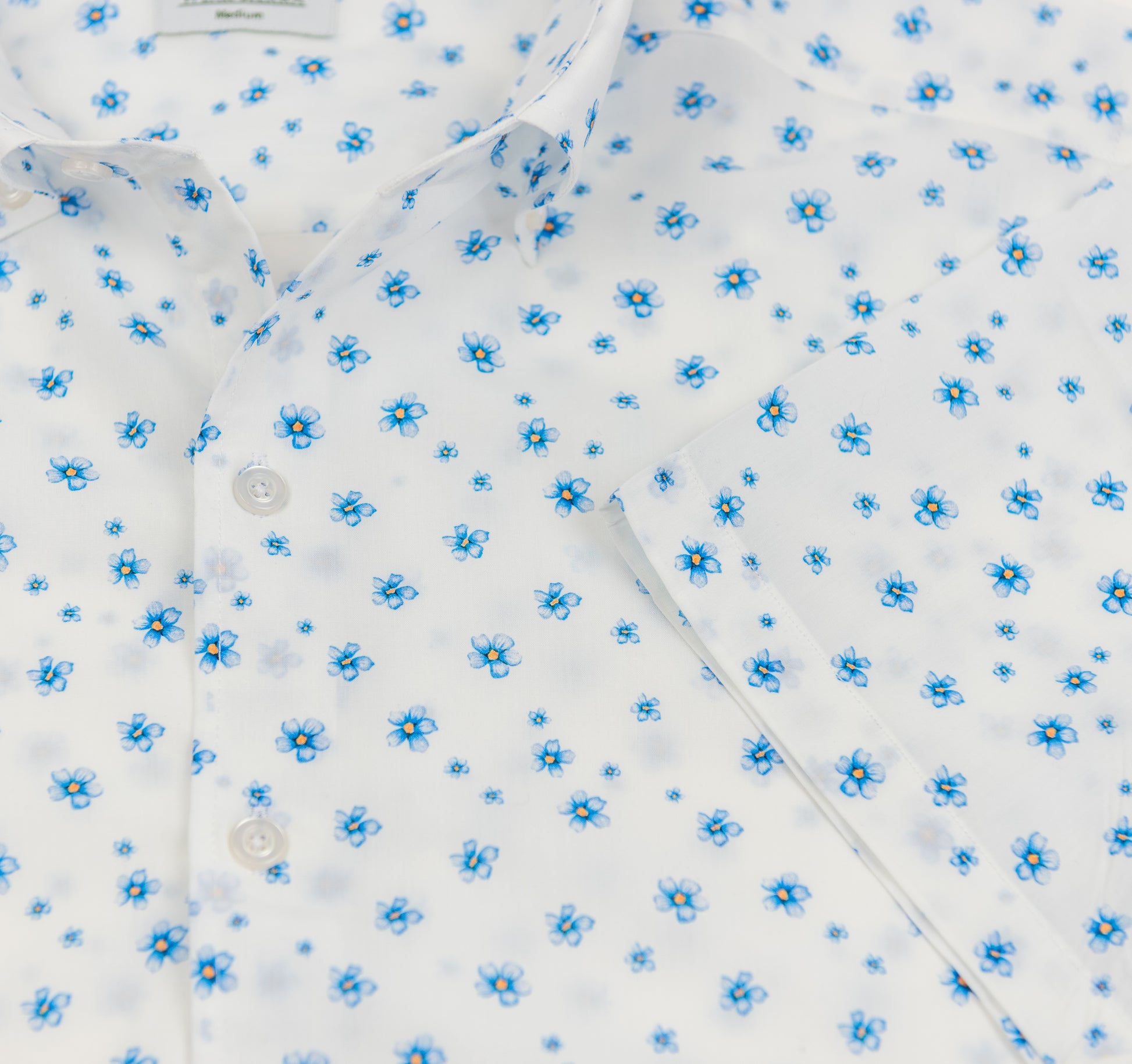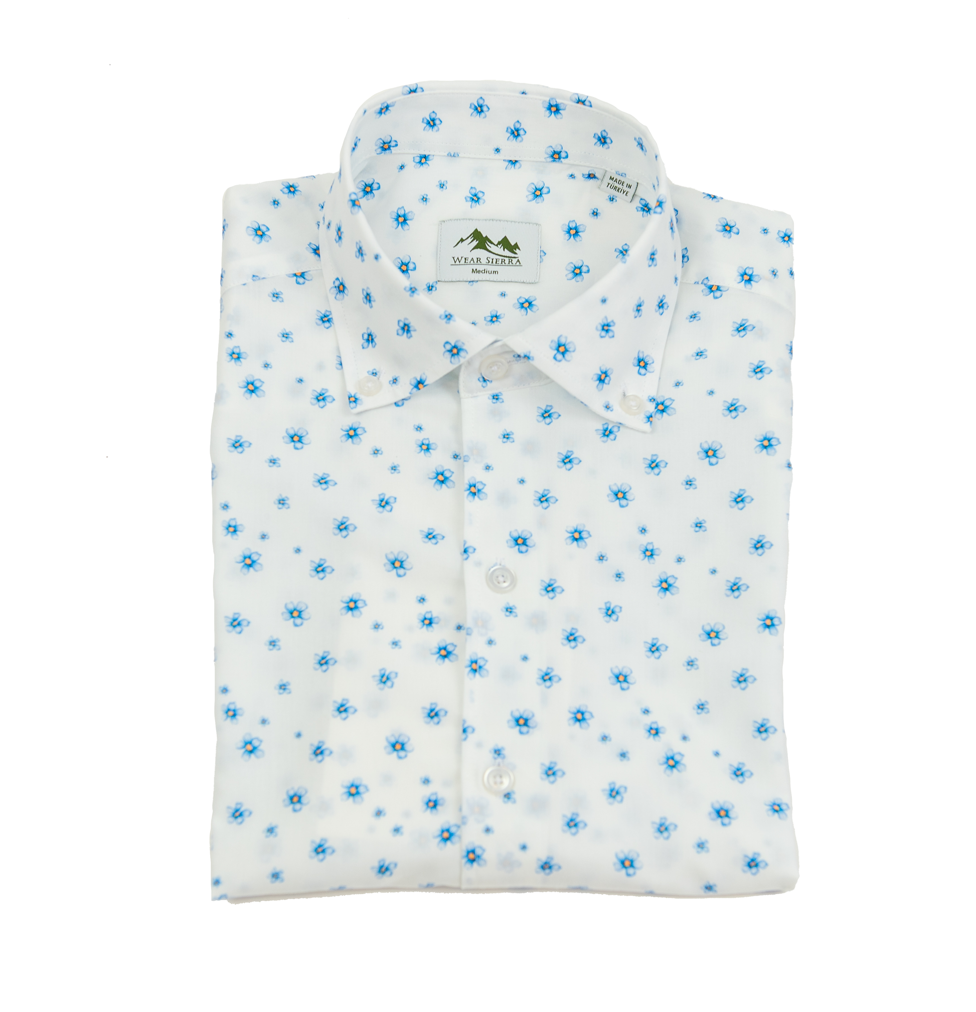 Wear Sierra Top Shelf Men's Cotton Button Down Short Sleeve Shirts White & Blue Flowers