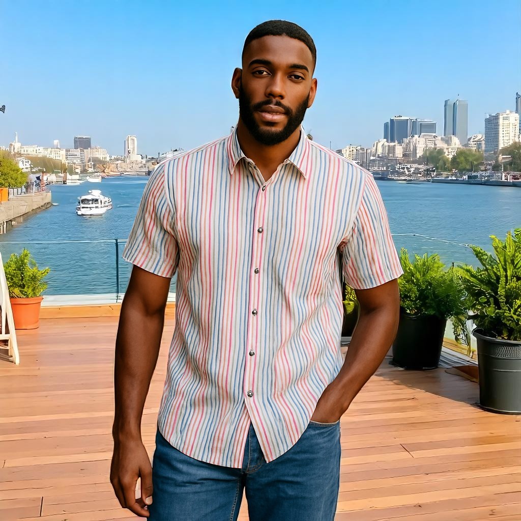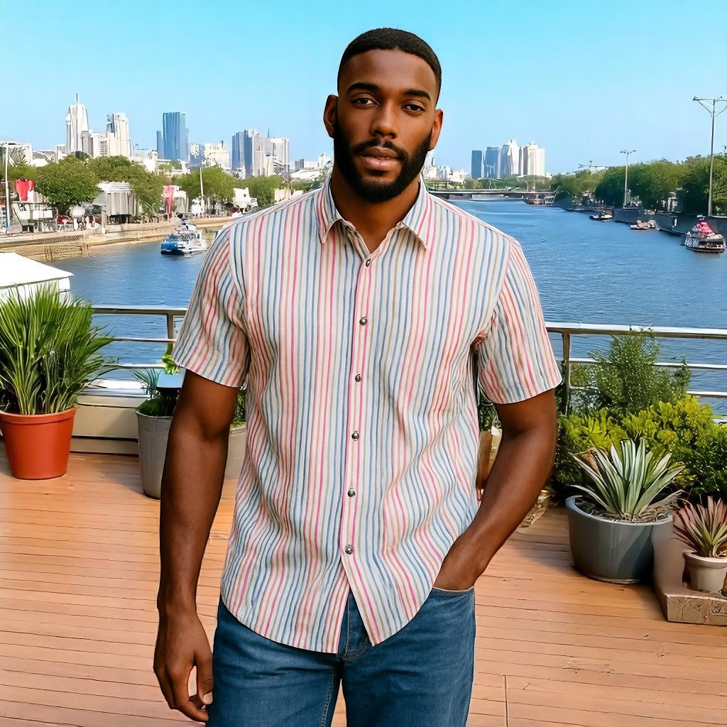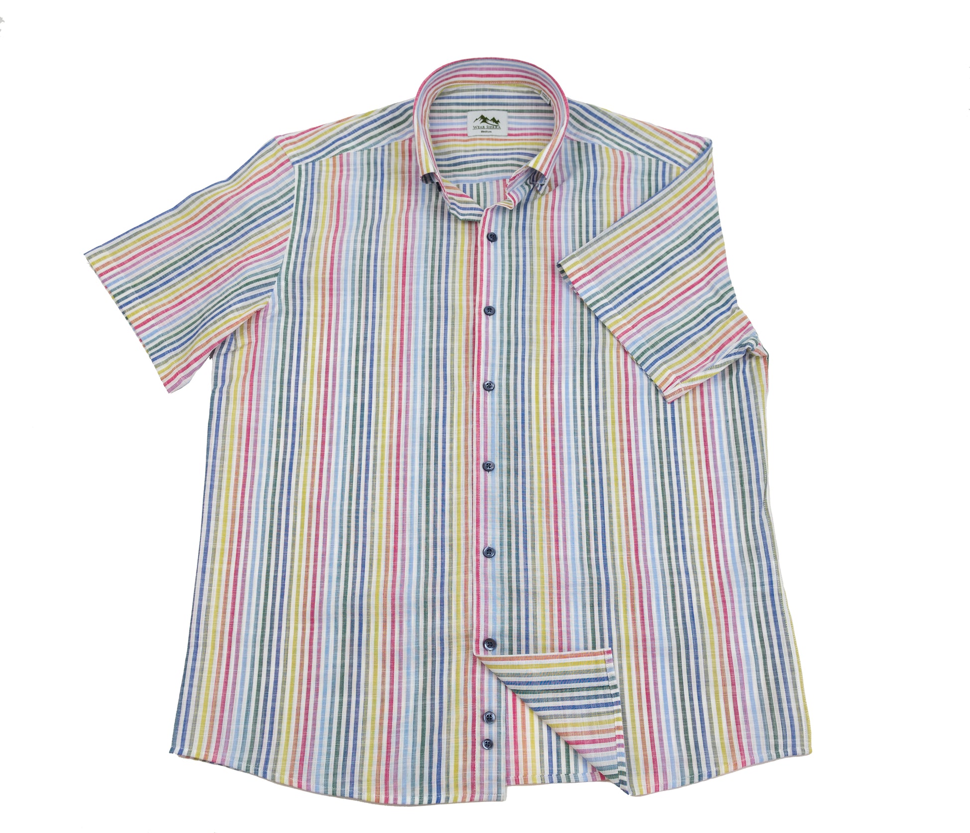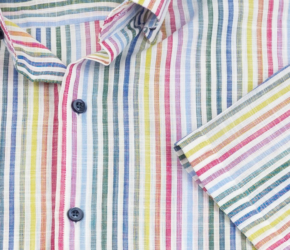 Wear Sierra Top Shelf Men's Cotton Short Sleeve Button Down Shirts White Rainbow Stripes