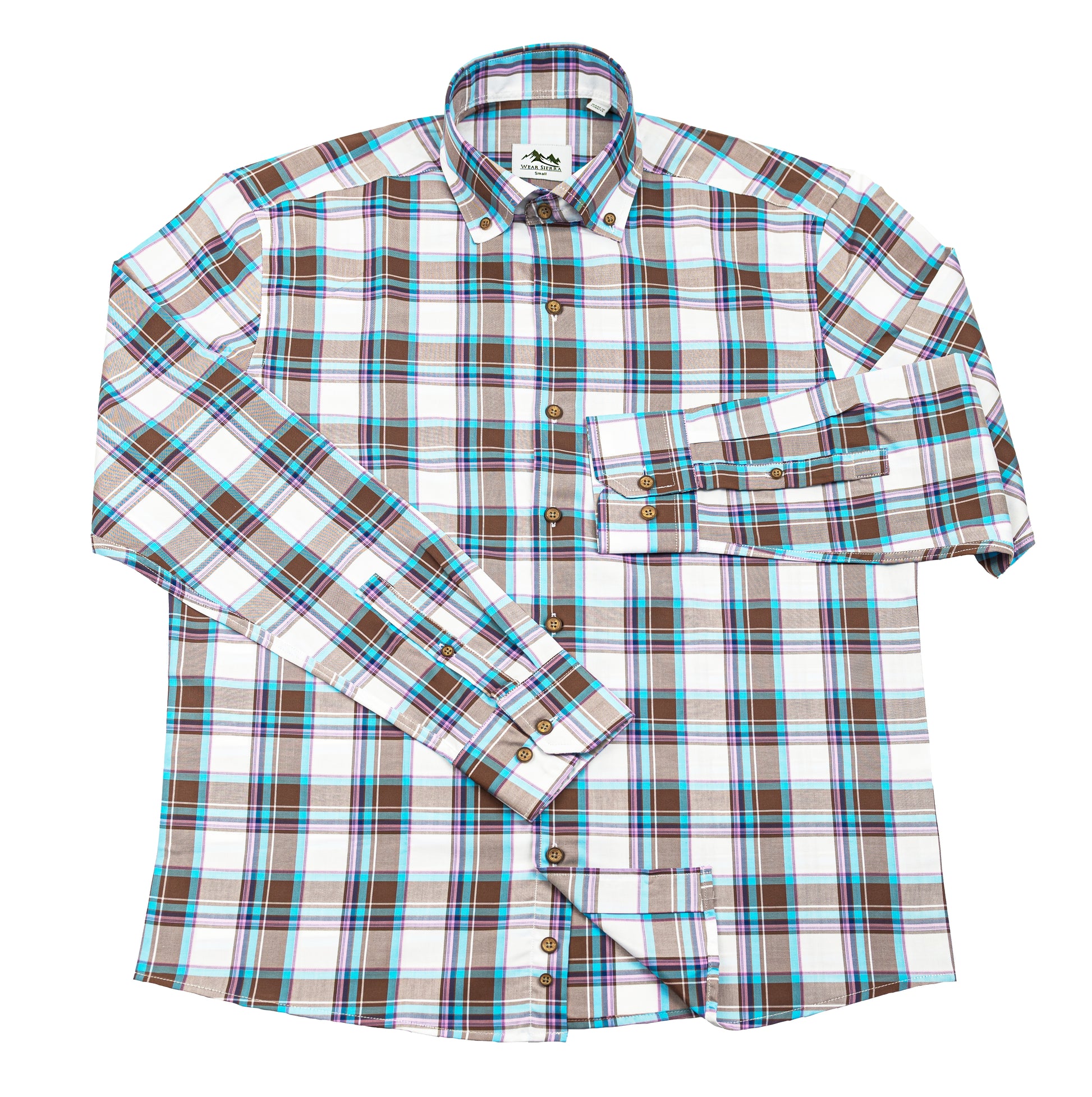 Wear Sierra Top Shelf Men's Cotton Long Sleeve Button Down Shirts in White Plaid