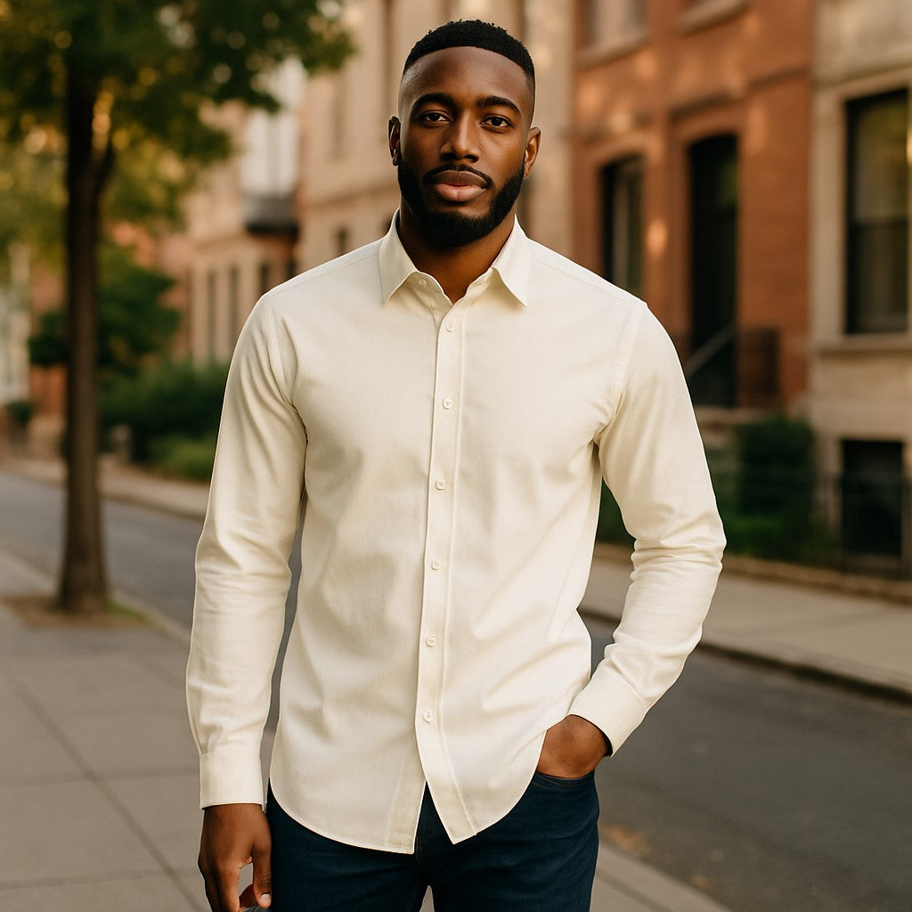 Wear Sierra Top Shelf Men's Cotton Long Sleeve Button Up Shirts in Classic Off-White