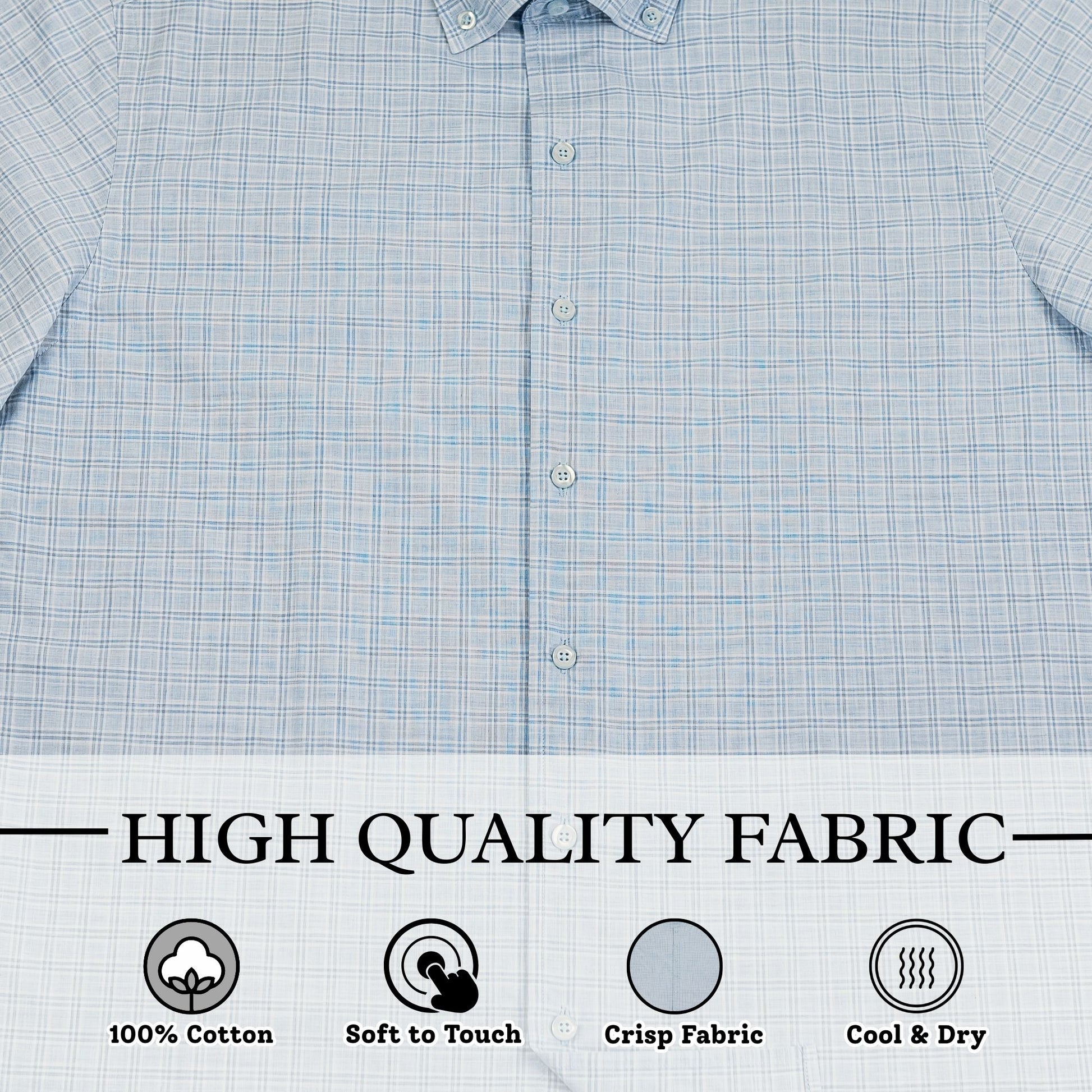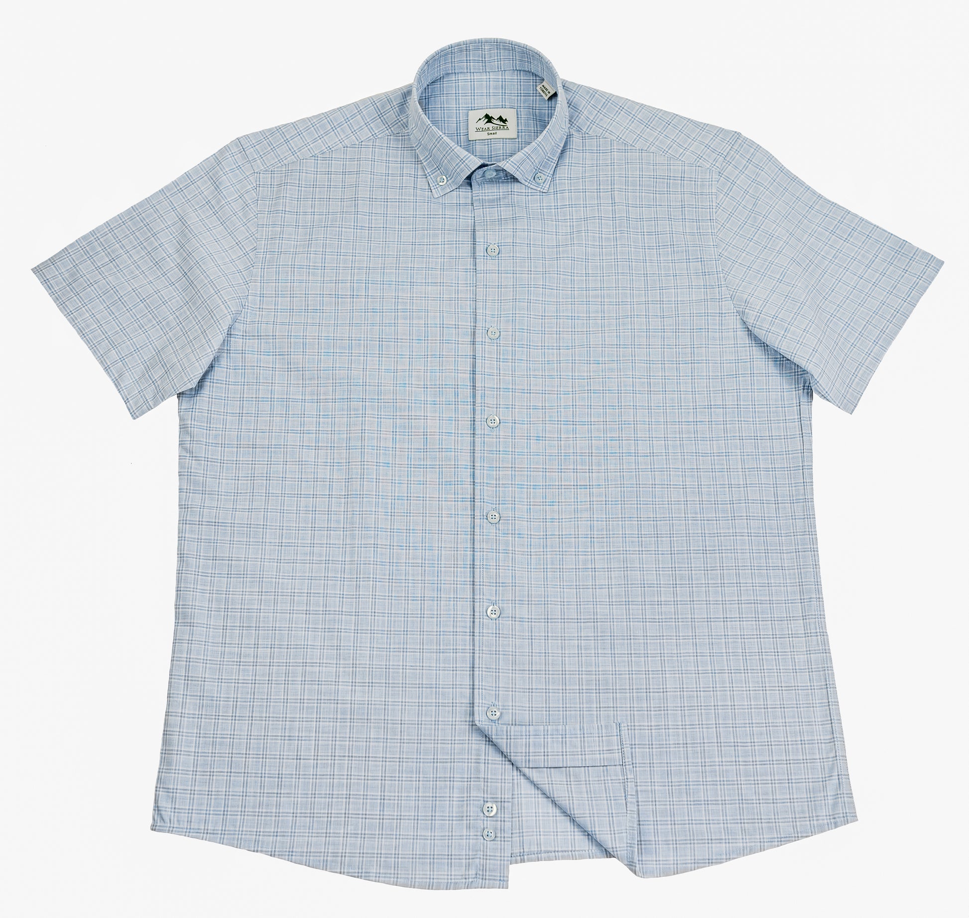 Wear Sierra Top Shelf Men's Linen Short Sleeve Button Down Shirt in Light Blue Plaid - Great for Casual Fridays at the Office and Date Nights