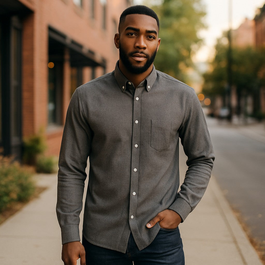 Wear Sierra Top Shelf Men's Turkish Cotton Long Sleeve Button Down Shirt in Classic Gray, Casual Friday Shirt for Men