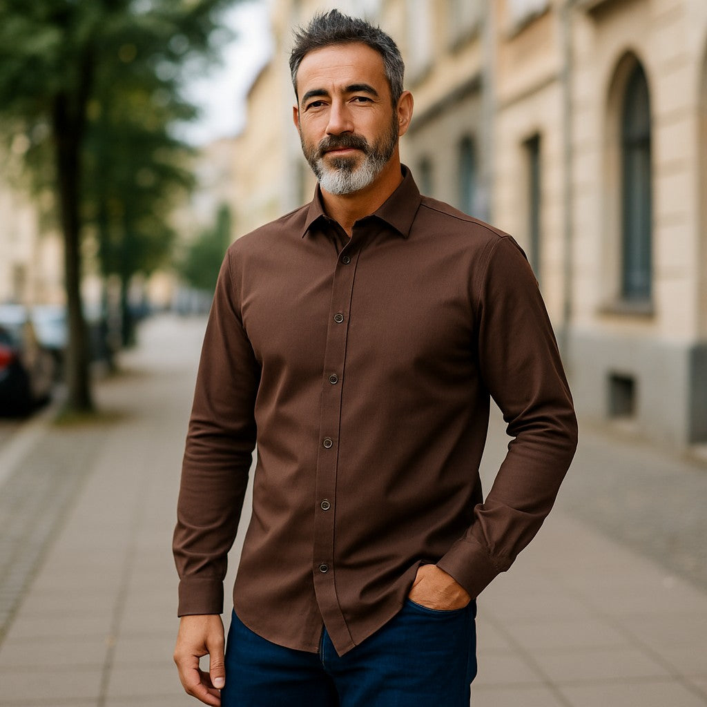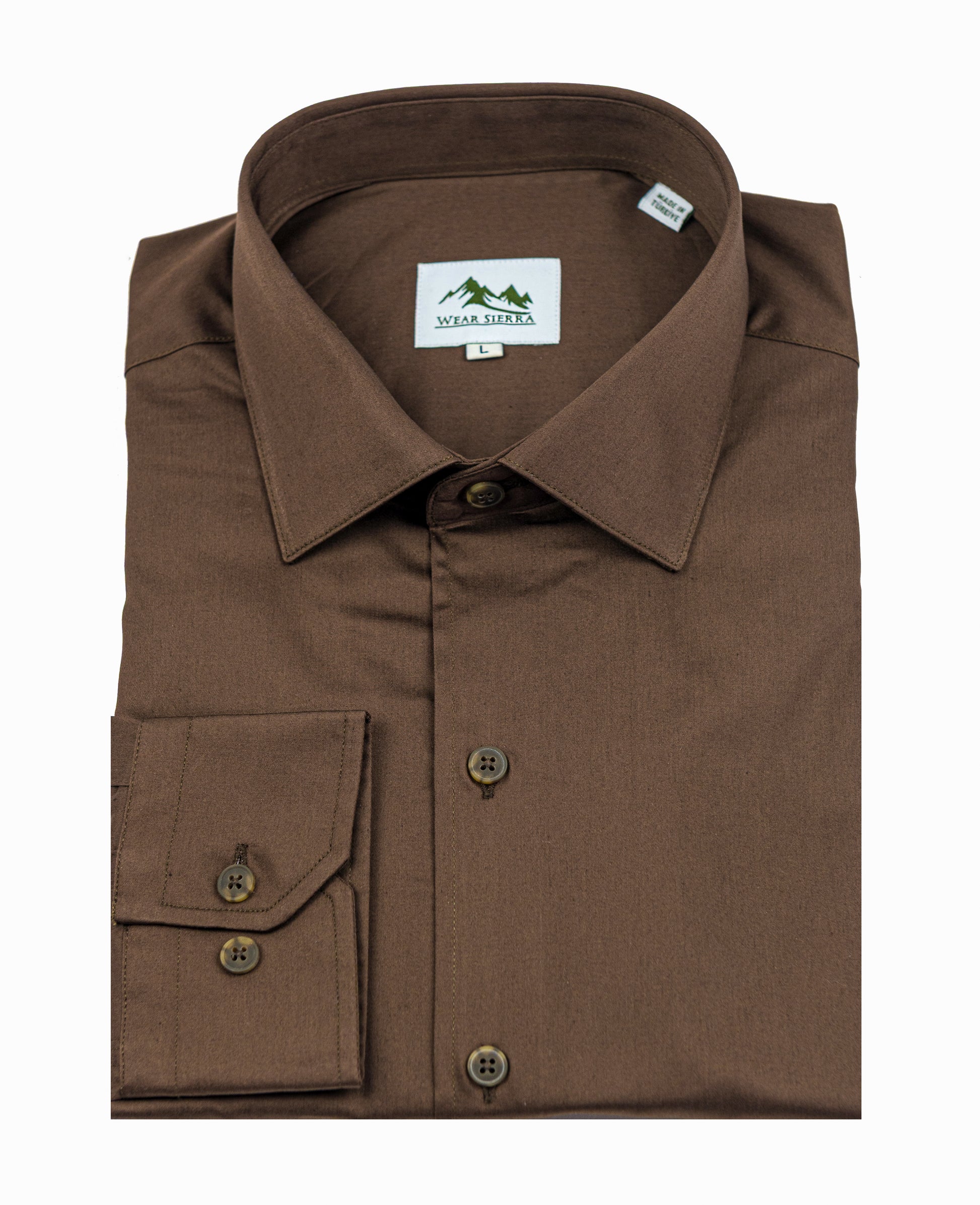Wear Sierra Top Shelf Men's Turkish Cotton Long Sleeve Button Up Shirt in Brown, Perfect Casual Friday Shirt for Men