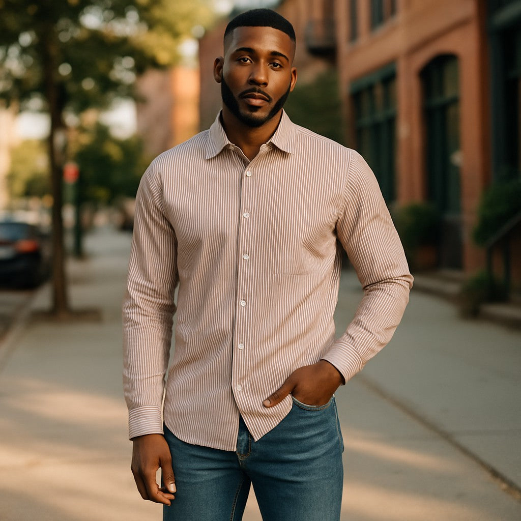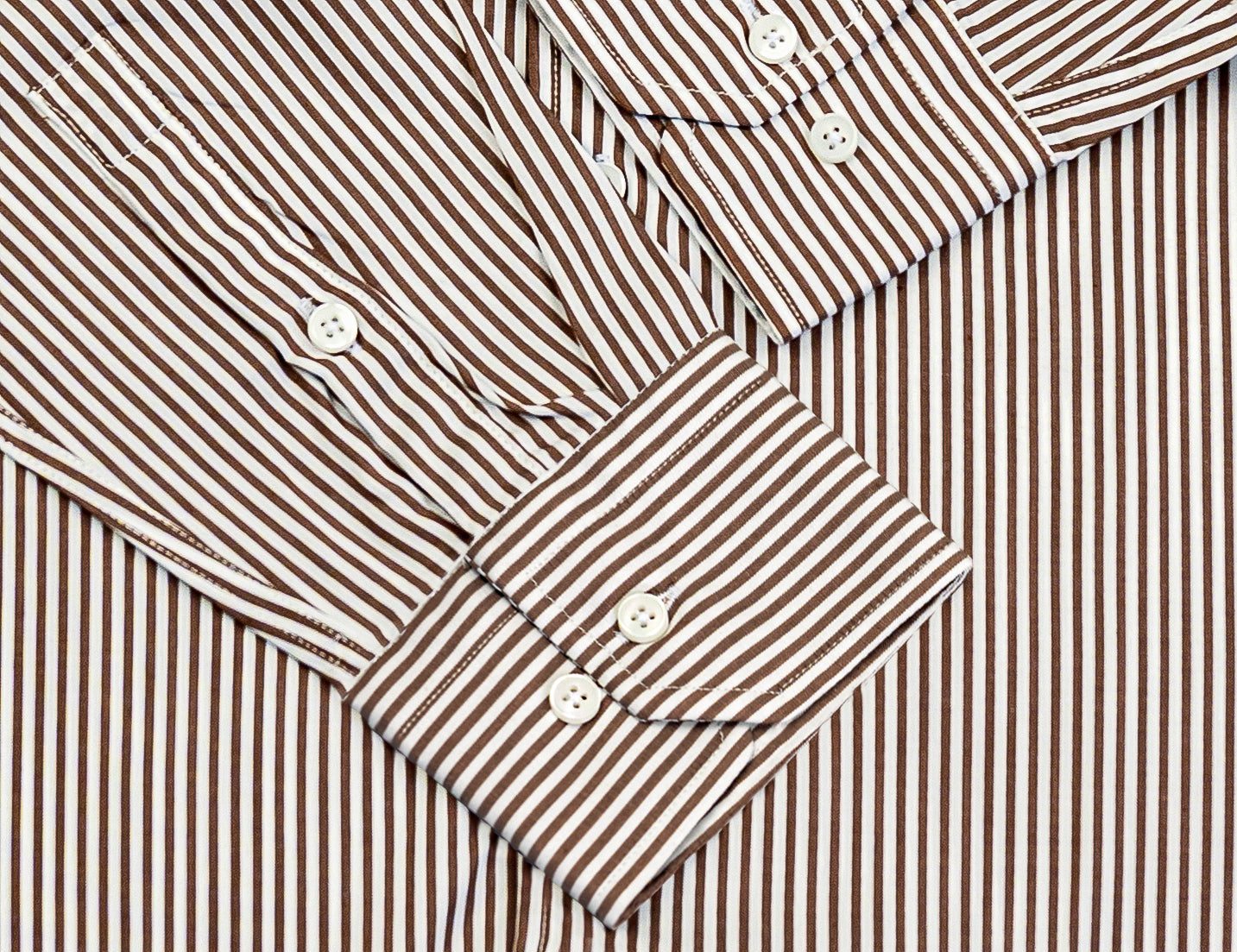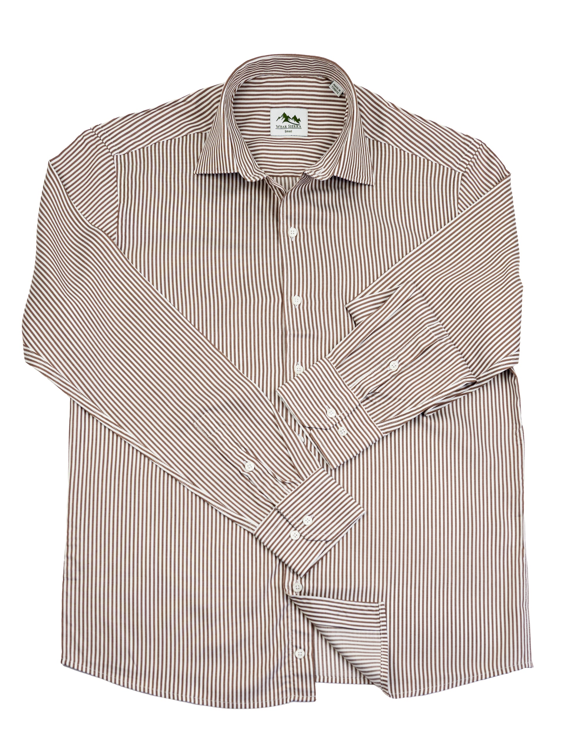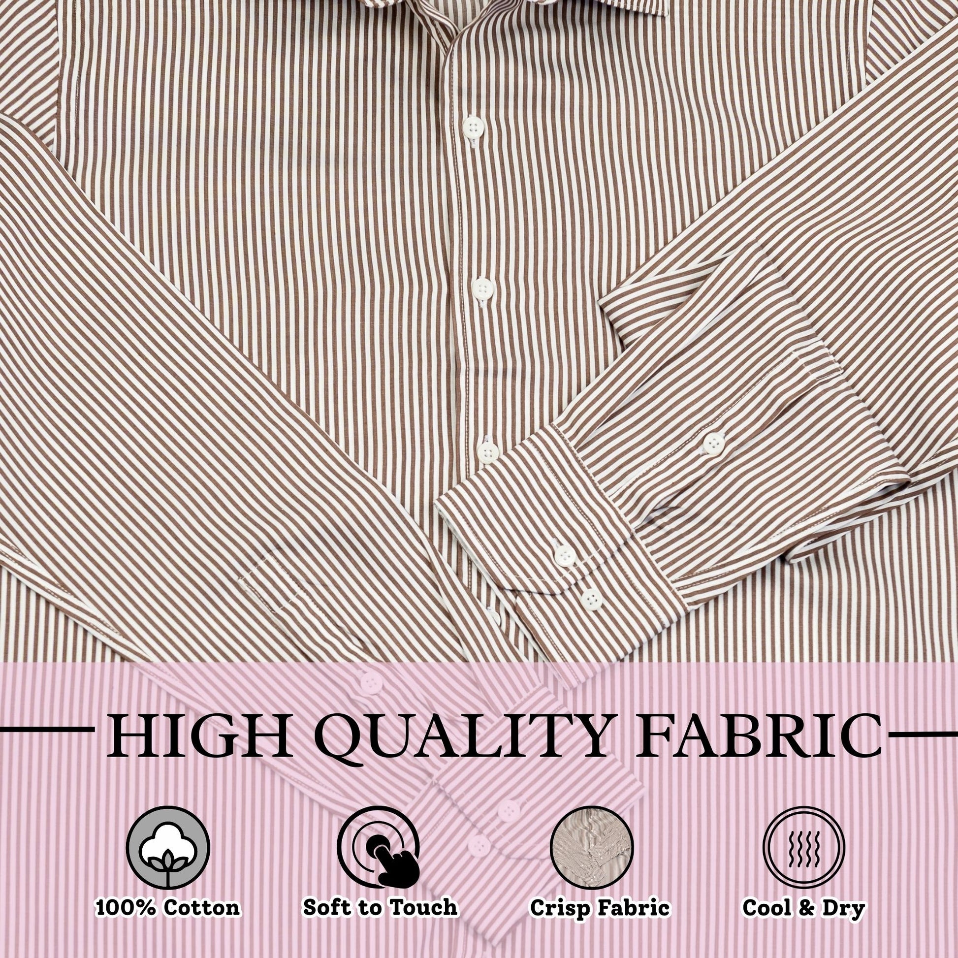 Wear Sierra Top Shelf Men's Turkish Cotton Long Sleeve Button Up Shirt in Brown Stripes, Casual Friday Shirt for Men