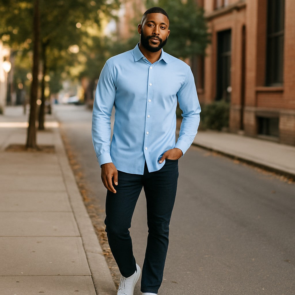 Wear Sierra Top Shelf Men's Turkish Cotton Long Sleeve Button Up Shirt in Classic Blue, Casual Friday Shirt for Men