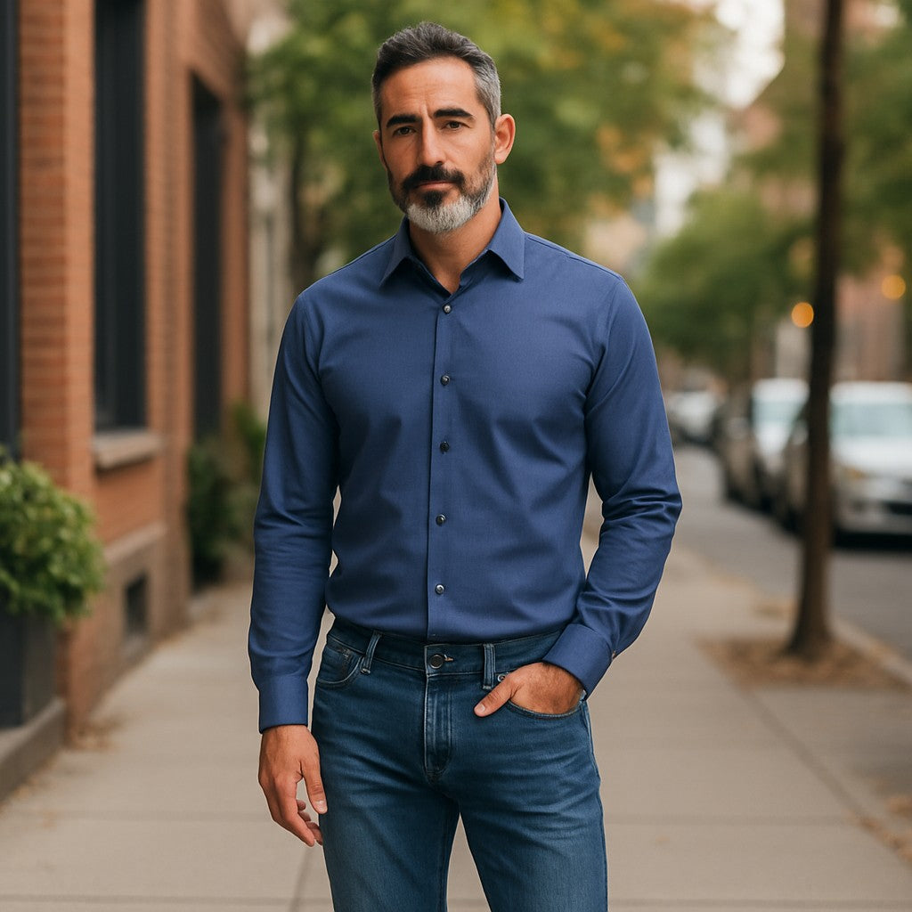 Wear Sierra Top Shelf Men's Turkish Cotton Long Sleeve Button Up Shirt in Classic Navy, Casual Friday Shirt for Men