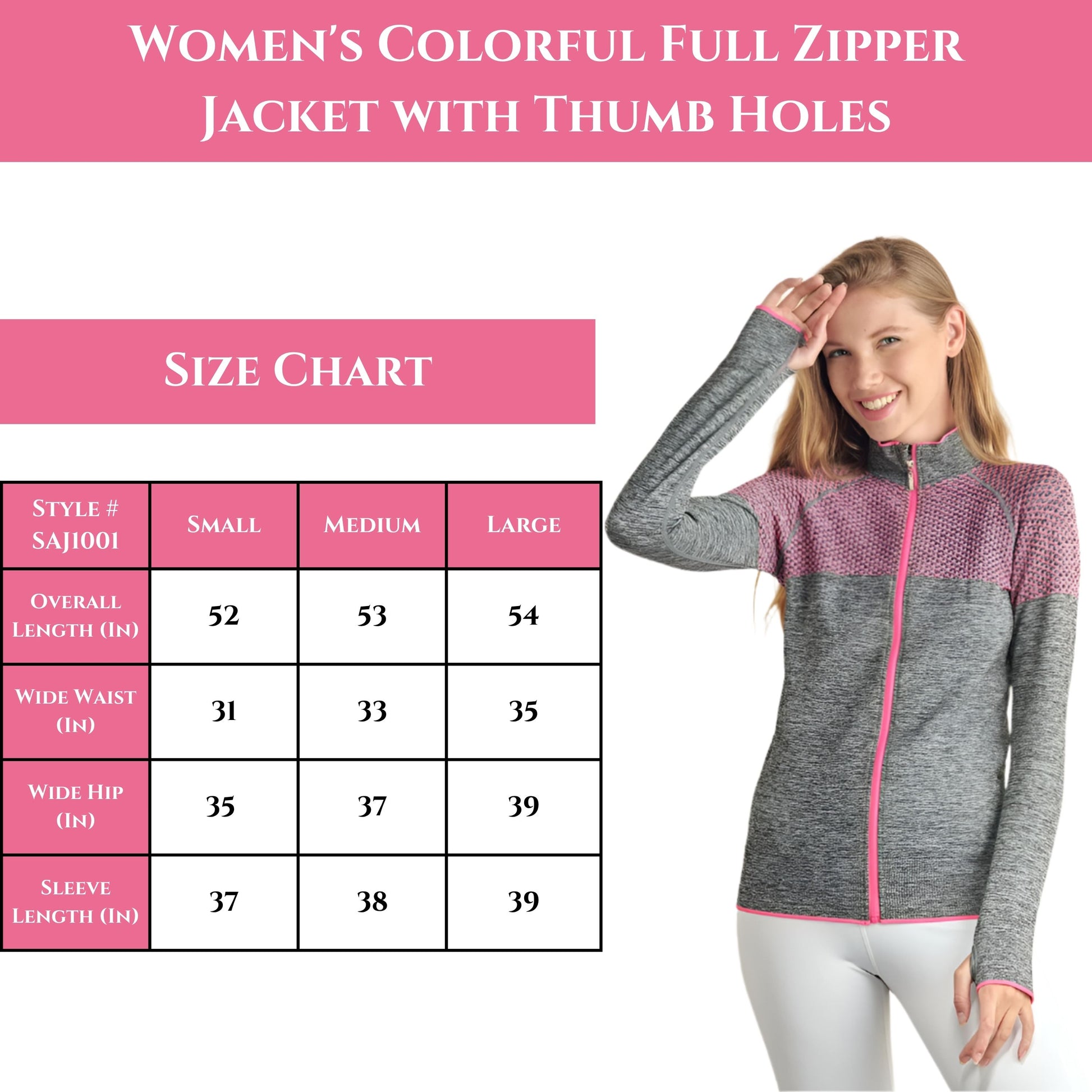 Women's Colorful Full Zipper Jacket with Thumb Holes - Perfect for Spring & Fall