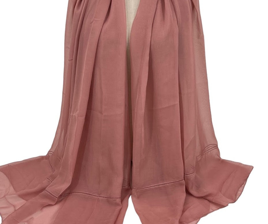 These silky, sheer chiffon-like scarves are a perfect accessory for weddings, graduations, or a night out on the town with the love of your life. Drape low and loose around your elbows, or wrap around your shoulders, with your evening, prom gown or other formal occasion dress. Makes a great hip wrap for the beach too to provide extra coverage, while still being fashionable! Super sheer, gossamer silk-like scarf is an amazing piece to add to any ensemble. Available in new, spring colors to complement any skin tone. These make a great gift for prom, birthdays and Mother's Day!