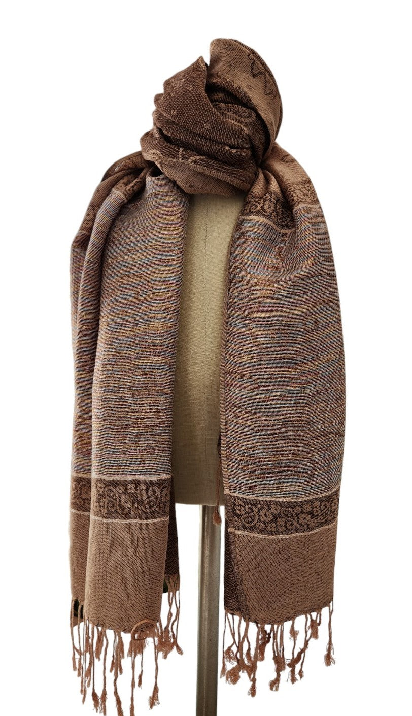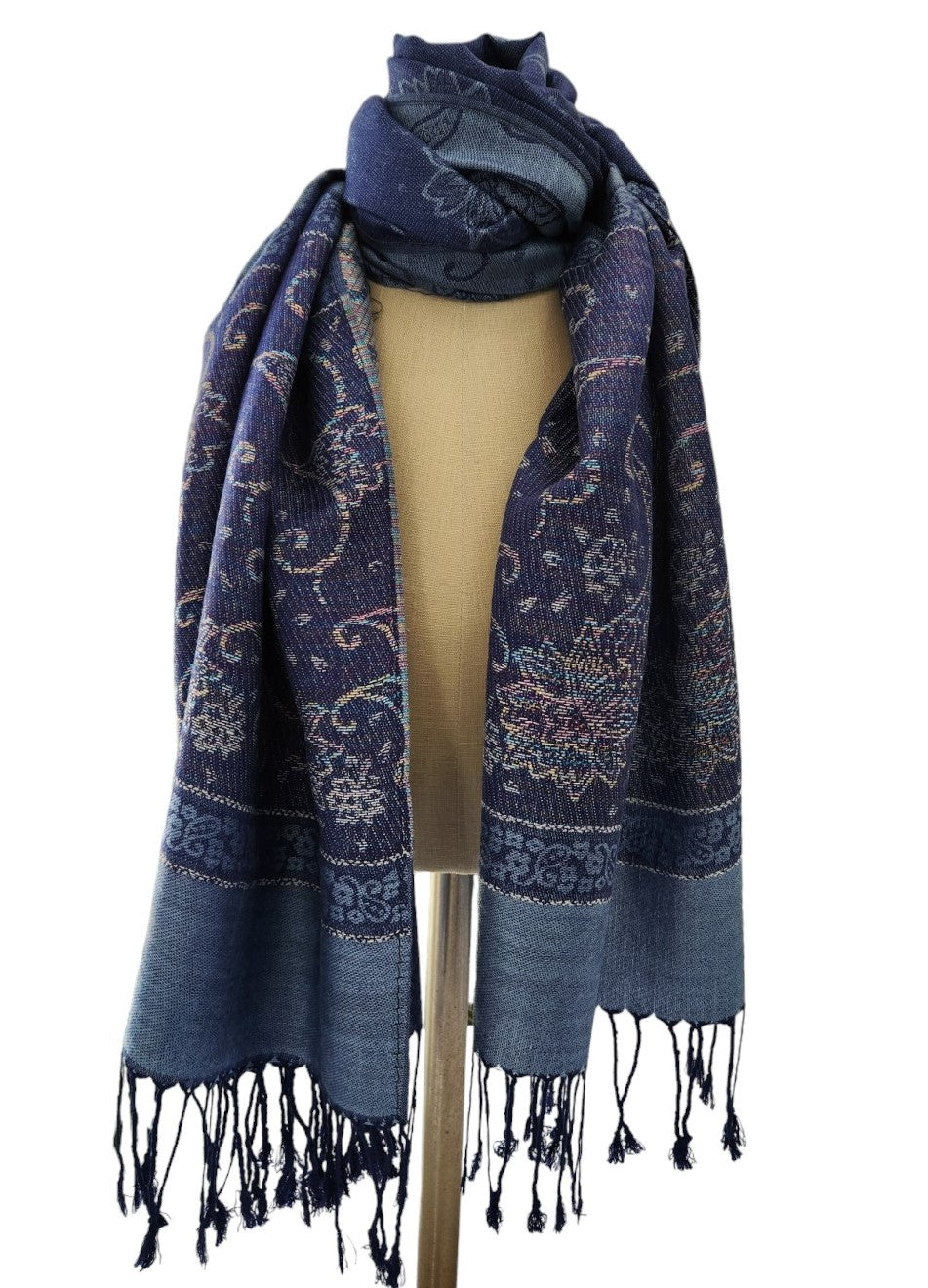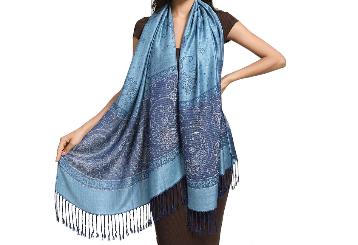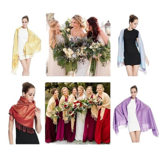 These silky lightweight scarves are perfect for the change of seasons when a cashmere scarf is too heavy, but you still need warmth for your neck and shoulders. Meticulously crafted to blend comfort with contemporary elegance, our scarves radiate warmth and style. Oversized and reversible, our Pashmina scarves are sure to make you stand out in the crowd. Perfect to use as a shawl, head wrap for windy or dusty days and even as a coverup for the beach, boat or lake. Go casual with your favorite jeans or dressy with your pencil skirt. These make excellent gifts for bridesmaids, birthdays, Mother's Day or a "just because" gift.