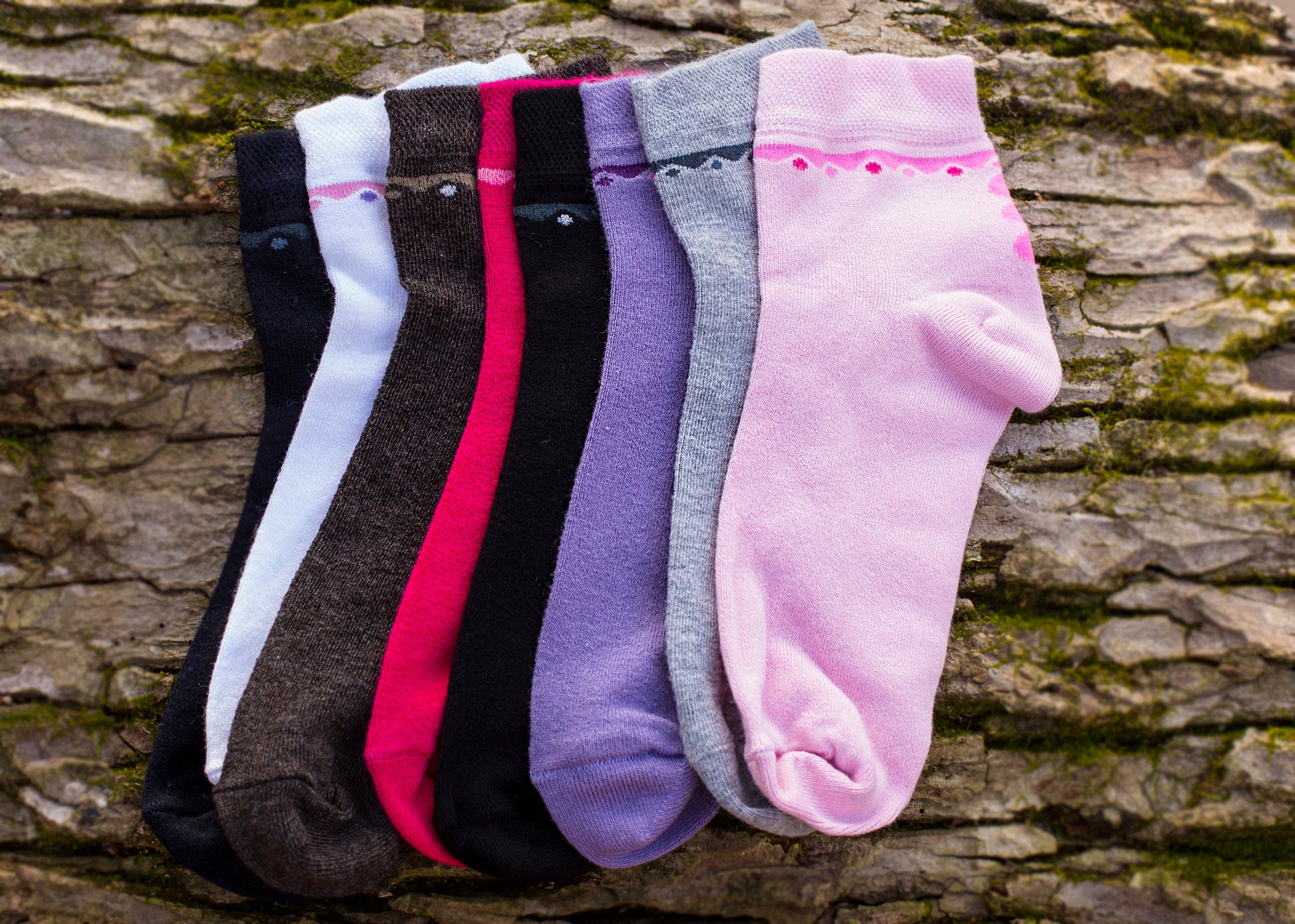 - Comes in a 4 pair pack of Fuchsia/Gray/Khaki/Black, Lilac/Brown/Ivory/Navy, or White/Black/Gray/Pink