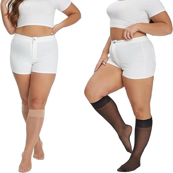Bring comfort and an elegant style to any wardrobe with our 6-Pack Women's Queen Plus Sheer Knee Highs. These smooth women sheer nylon hose are soft, stretchable, breathable and very comfortable to wear. They are awesome at keeping your feet dry, cool and snug all day and they will not slip down easily due to the no-pinch wide cuff. Reinforced toe to prevent runs, snags and tears. Ideal for those needing sheer hosiery products for warmer months. Knee High features elastic top, sheer leg, and sandal foot with run-resistant toe.