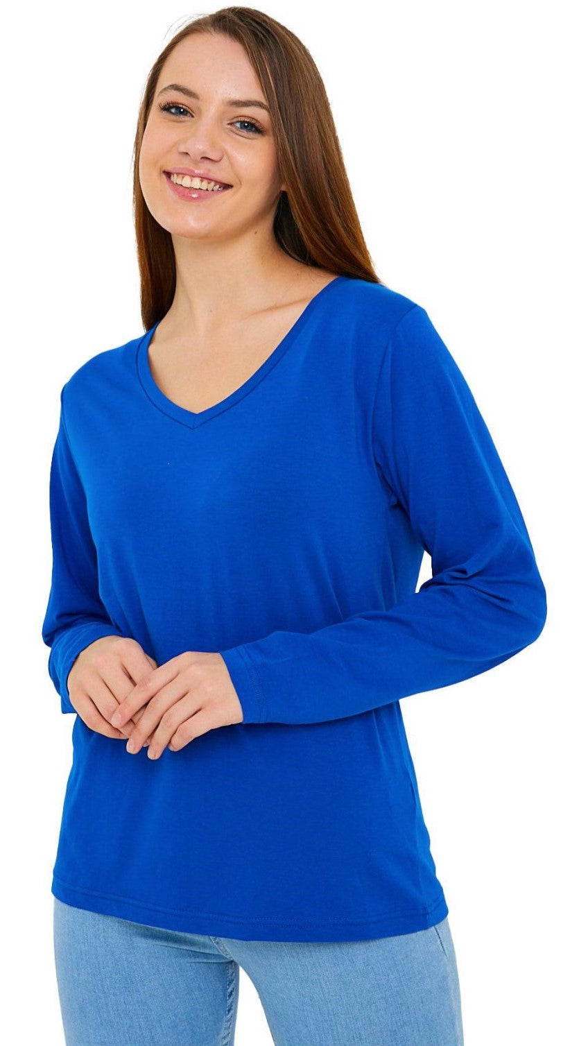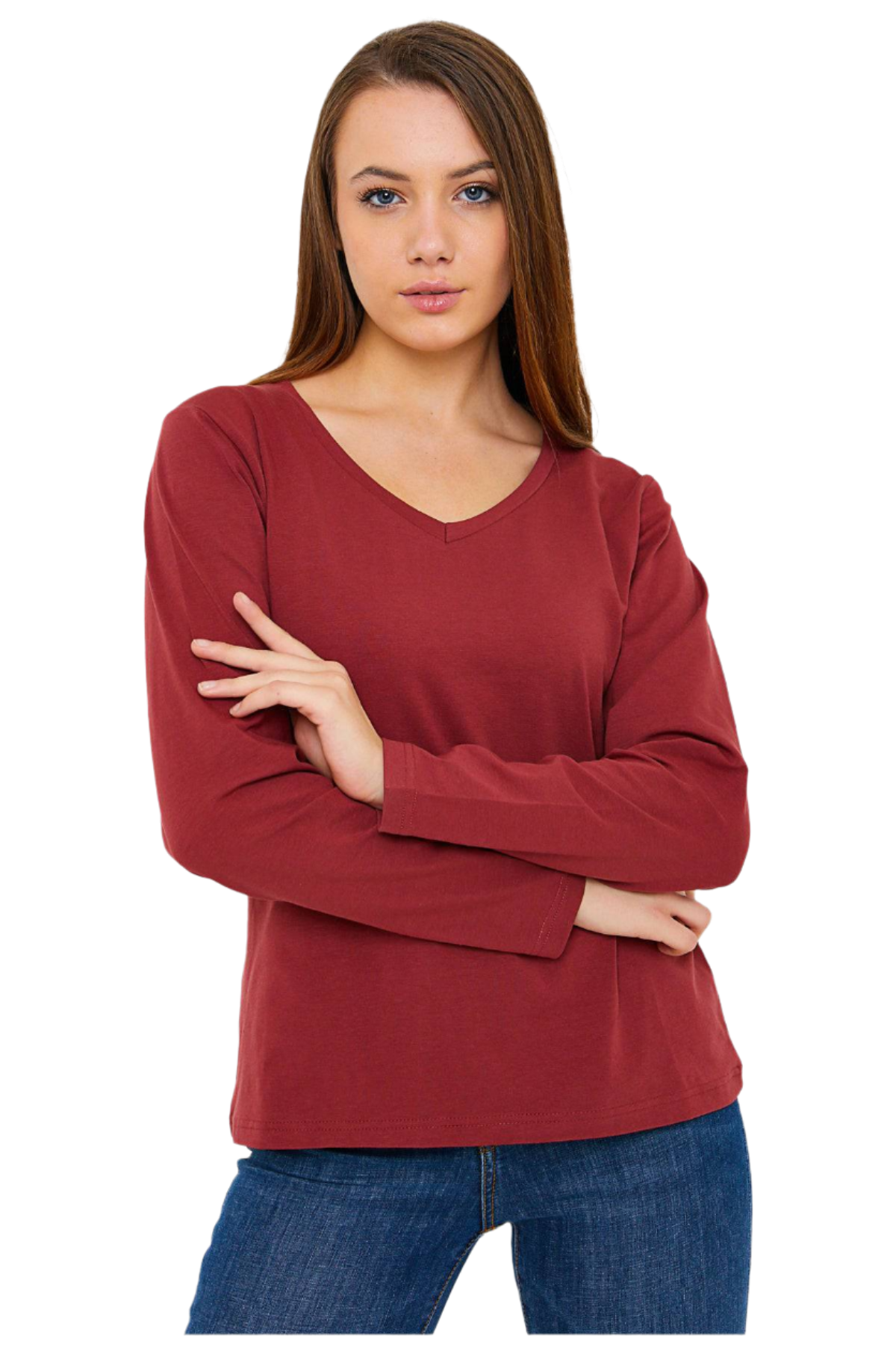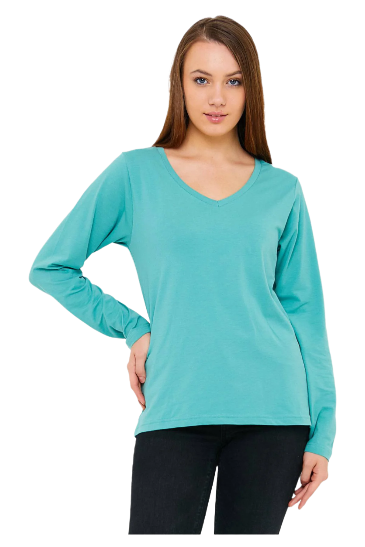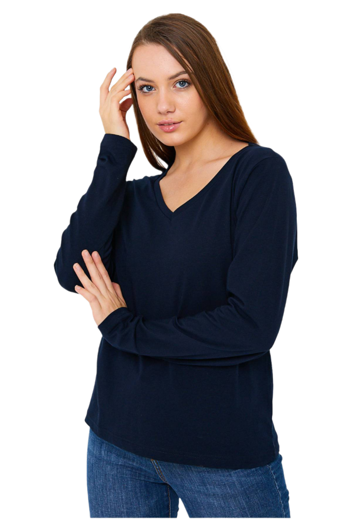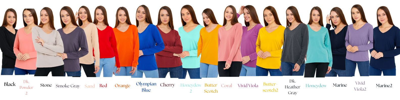 Women's Long Sleeve V-Neck Shirts - in All Natural, Colorful Pima Cotton, Turkish Cotton Long-Sleeve Shirts - Great for Layering under Sweaters and Scrubs