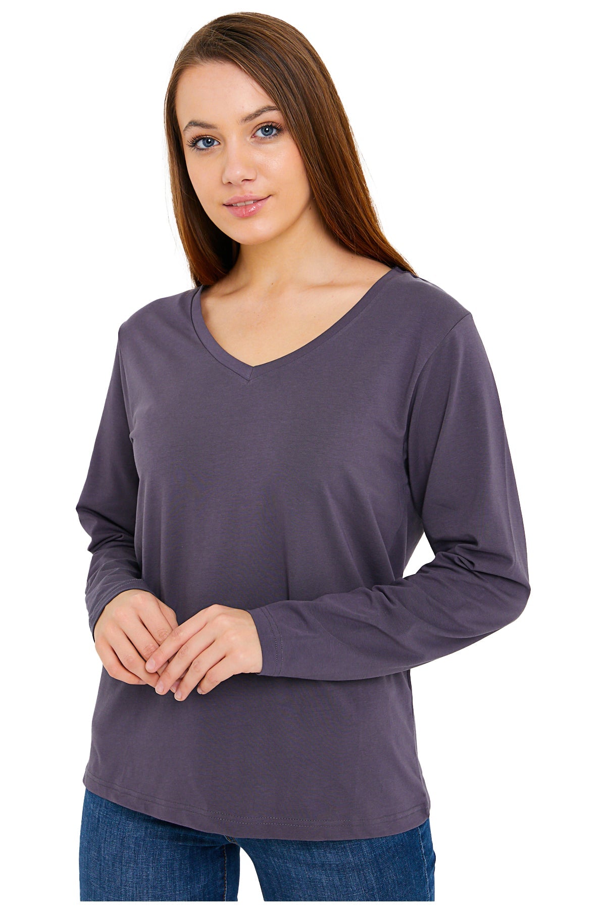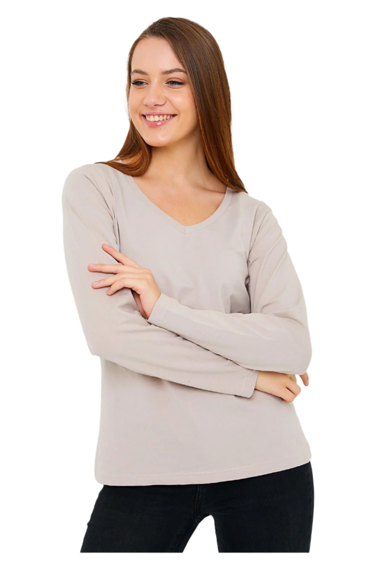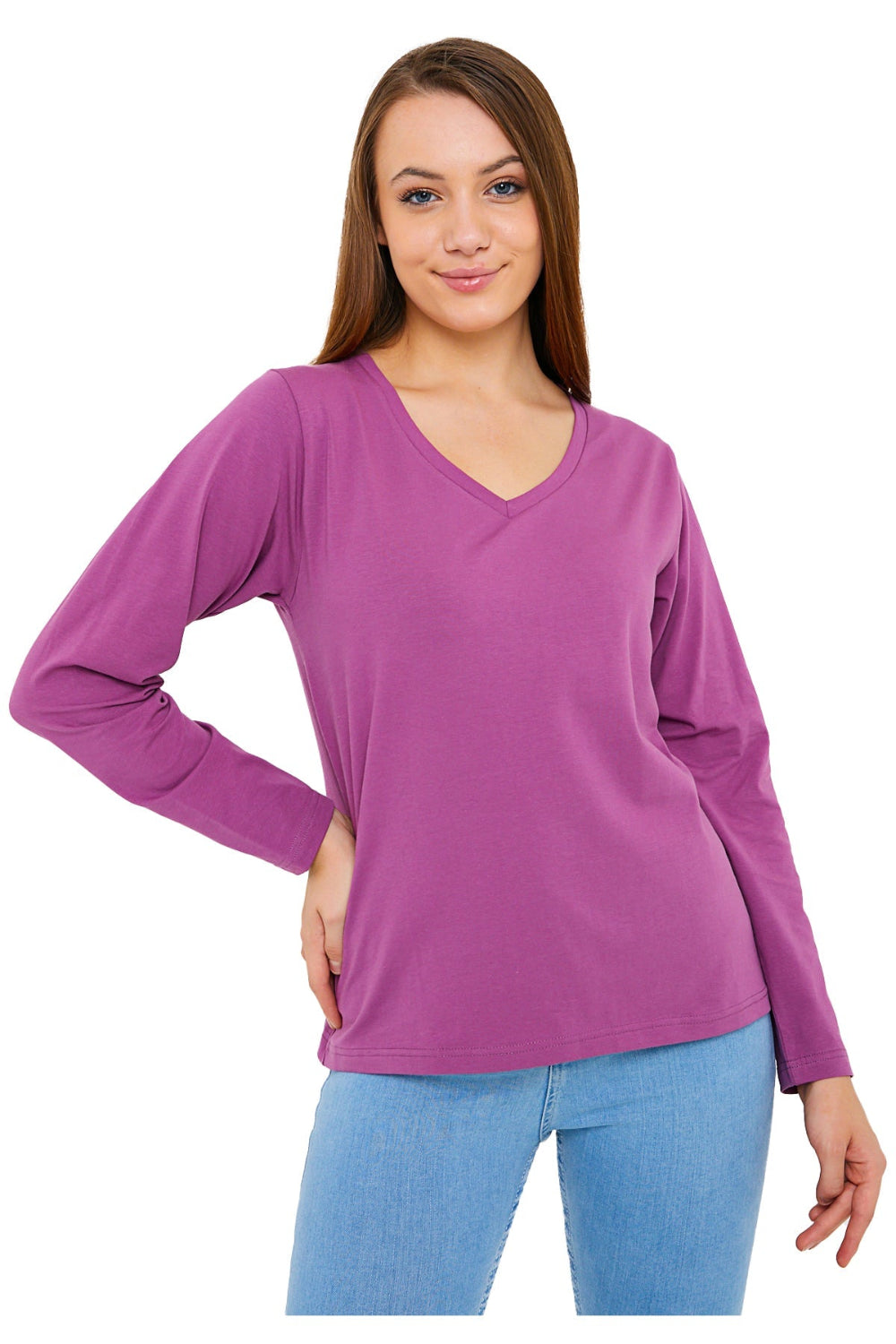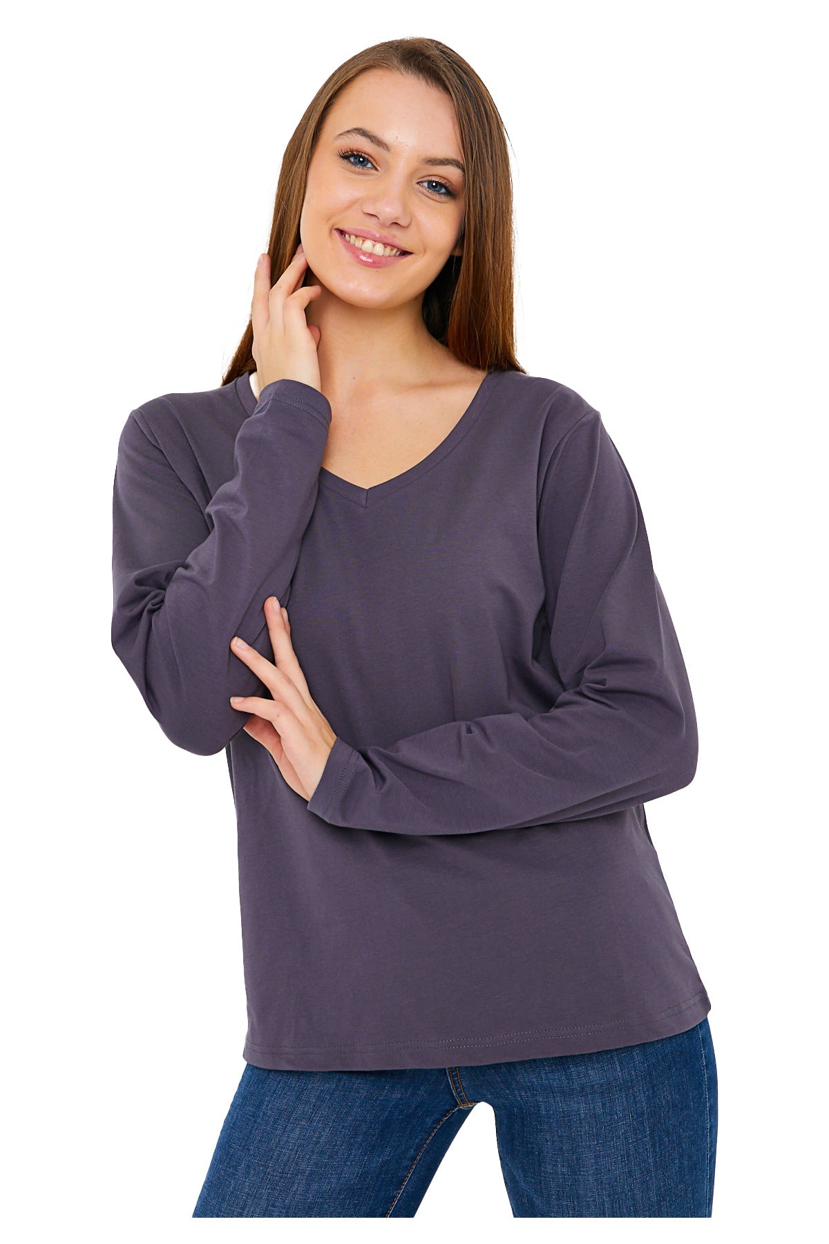 Women's Long Sleeve V-Neck Shirts - in All Natural, Colorful Pima Cotton, Turkish Cotton Long-Sleeve Shirts - Great for Layering under Sweaters and Scrubs