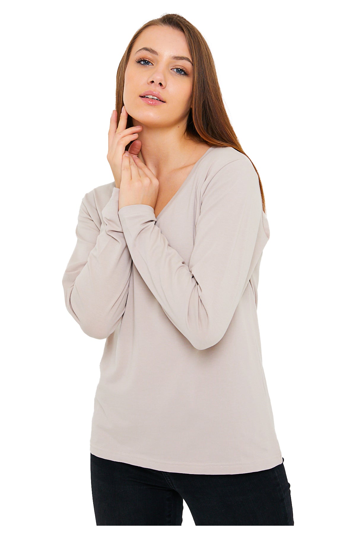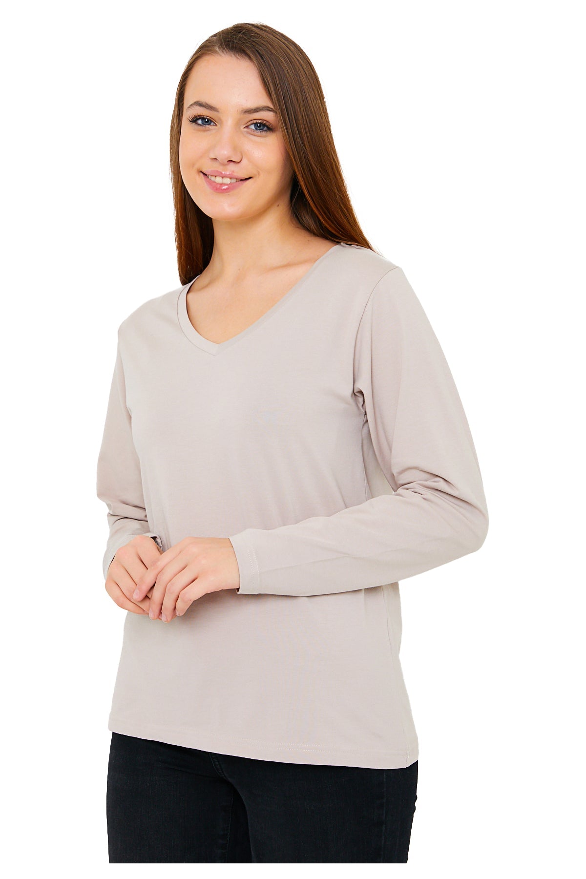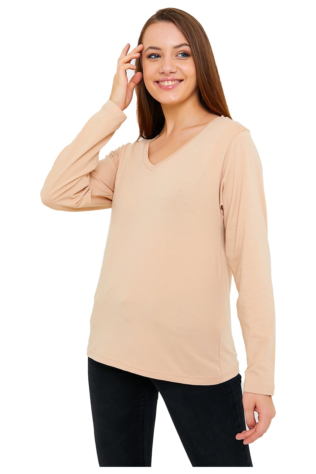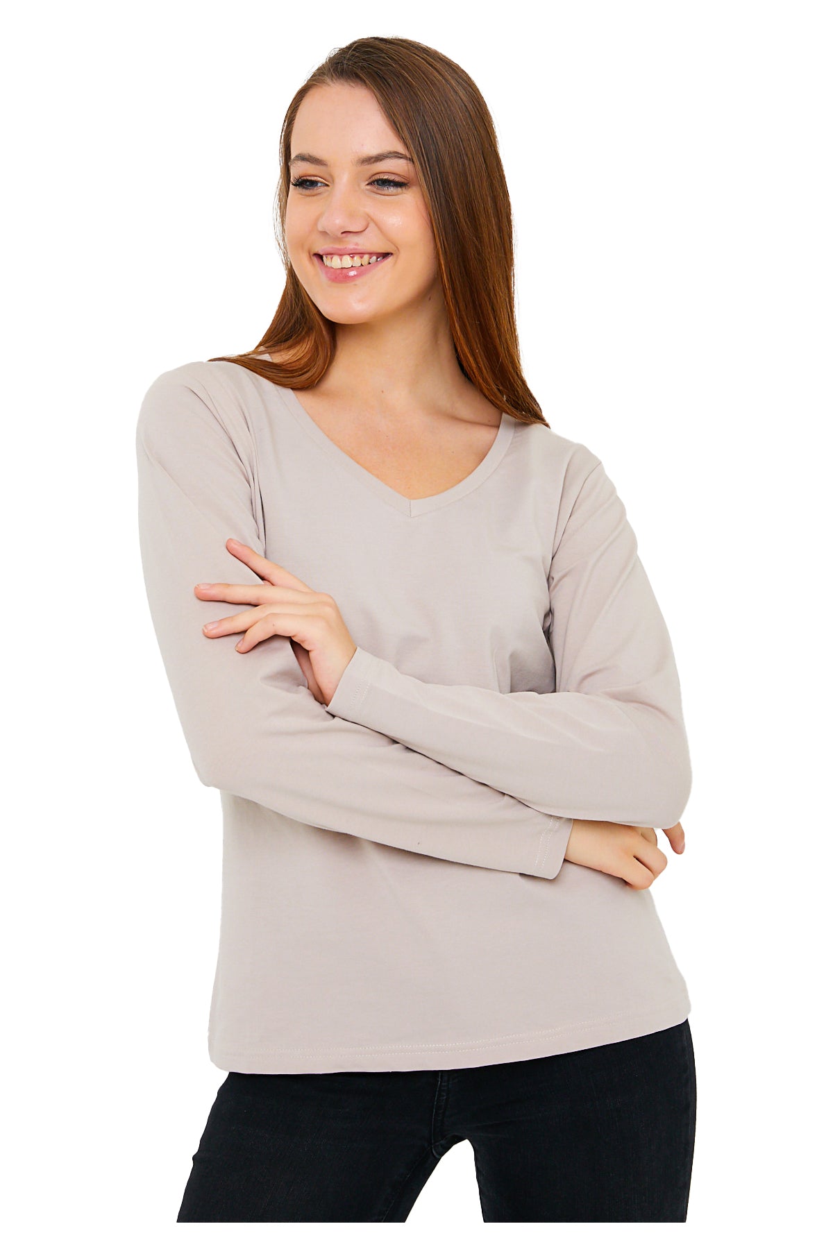 Women's Long Sleeve V-Neck Shirts - in All Natural, Colorful Pima Cotton, Turkish Cotton Long-Sleeve Shirts - Great for Layering under Sweaters and Scrubs
