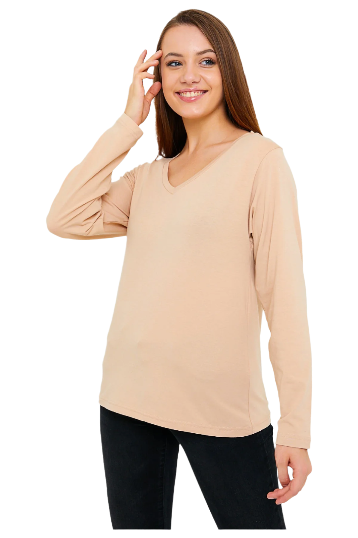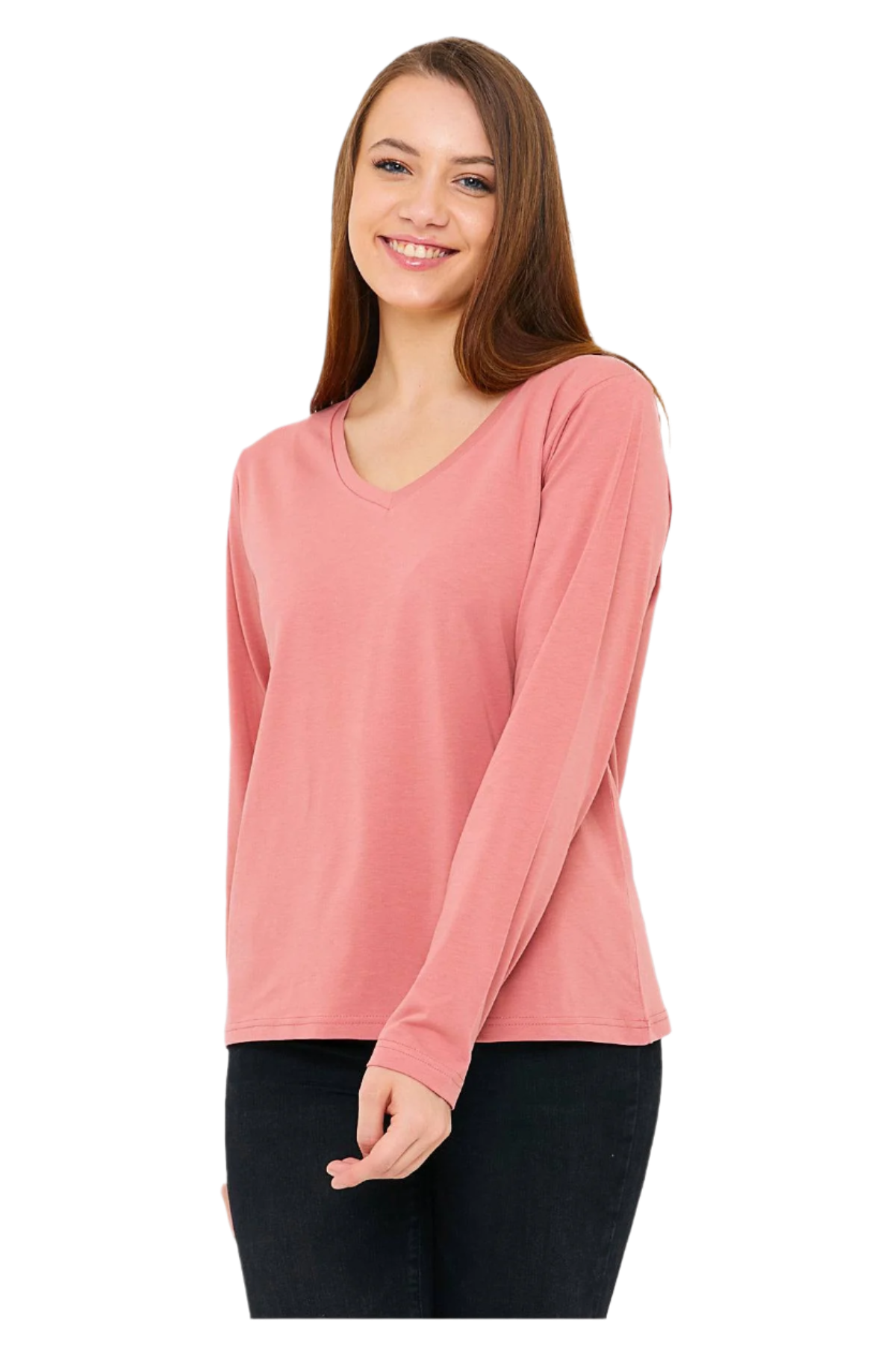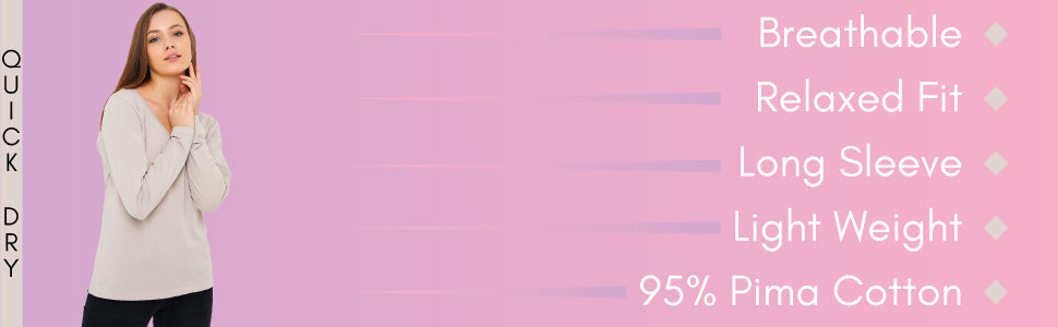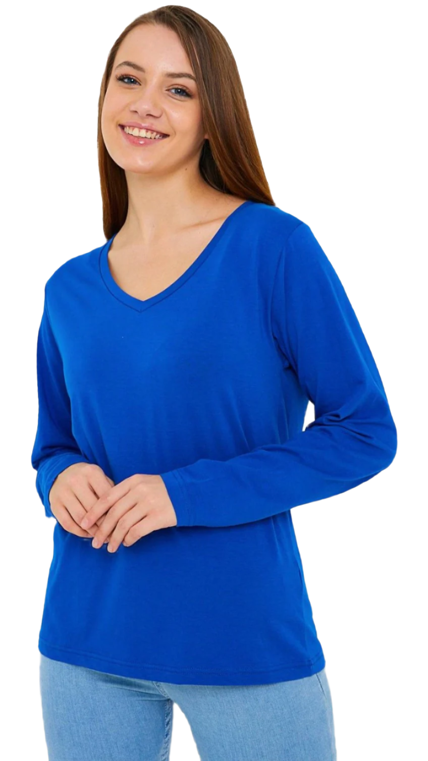 These long-sleeved shirts are available in a wide assortment of beautiful colors, making them perfect for pairing with any outfit. Designed to complement and flatter your figure, no matter your size. Go casual with jeans or wear with your favorite skirt for a well-coordinated look. Experience the superior comfort, so soft to the touch and breathable quality of our long-sleeve Pima Combed Cotton Women's Shirts. You'll love the look and feel of these soft and cozy, wonderfully made shirts - they will become your favorite go-to shirt for any occasion. Our V-Neck Long-Sleeve Shirts for Women are also perfect for layering with scrubs, sweaters, or puffy vests.